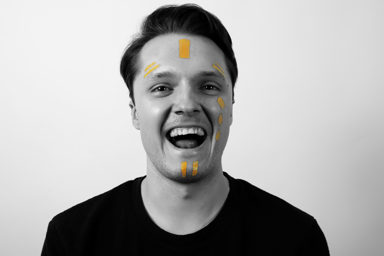 Kūrėja pasakoja, kad pradėjus vystyti parodos idėją, norėjosi į procesą įtraukti ir modelius. Bekalbant su drauge, toptelėjo mintis išpiešti jiems veidus. Šie raštai ir išryškėja nestandartinėse, nespalvotose portretinėse fotografijose.