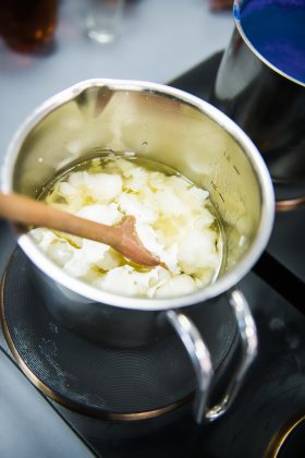 • Pirmasis žingsnis liejant žvakę – ištirpdyti vašką. „Smells Like Spells“ naudoja organišką ir natūralų sojų vašką, kuris į aplinką neišskiria kenksmingų medžiagų, nealergizuoja, o iš jo išlieta žvakė dega dvigubai ilgiau nei įprasta. Žmonės, kurie vengia žvakių ar smilkalų namuose dėl jų skleidžiamų, ilgainiui galvos skausmus ar kitus nemalonius pojūčius sukeliančių kvapų, turėtų įsitikinti, kaip šie produktai gaminami, ar jiems sukurti naudojamos natūralios ir nekenksmingos medžiagos.