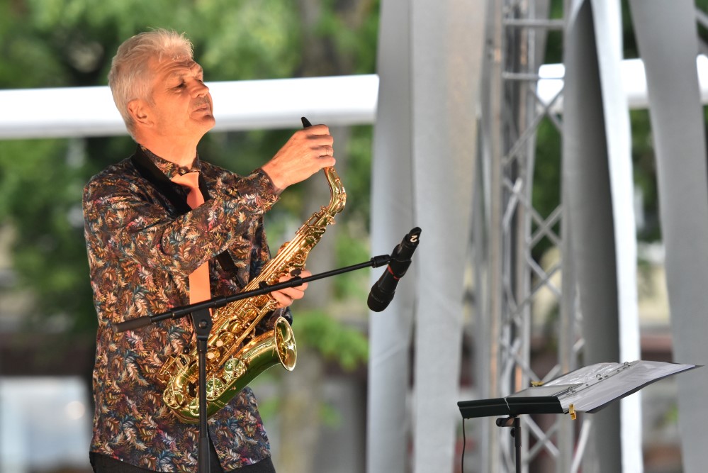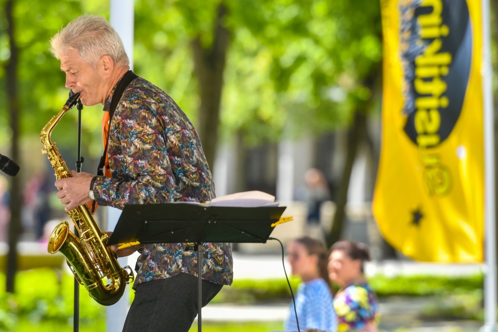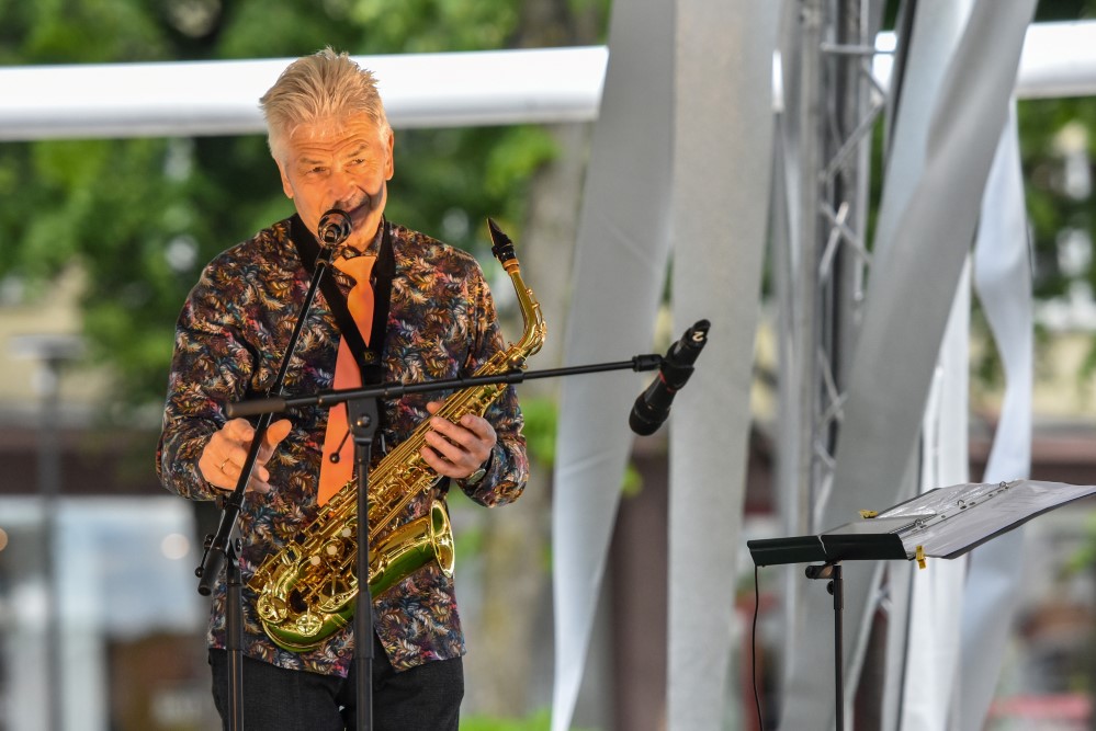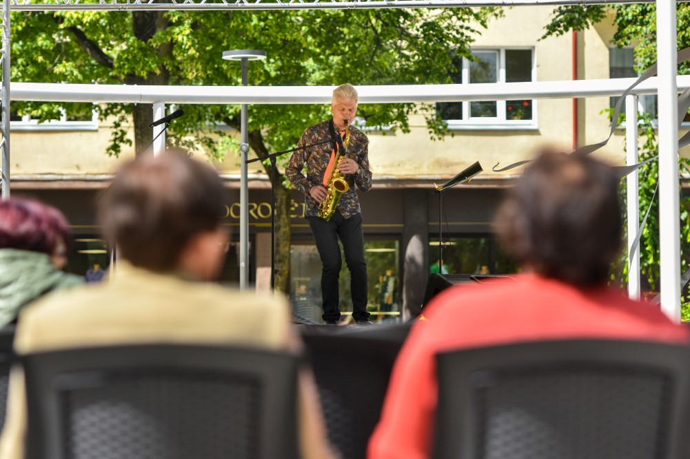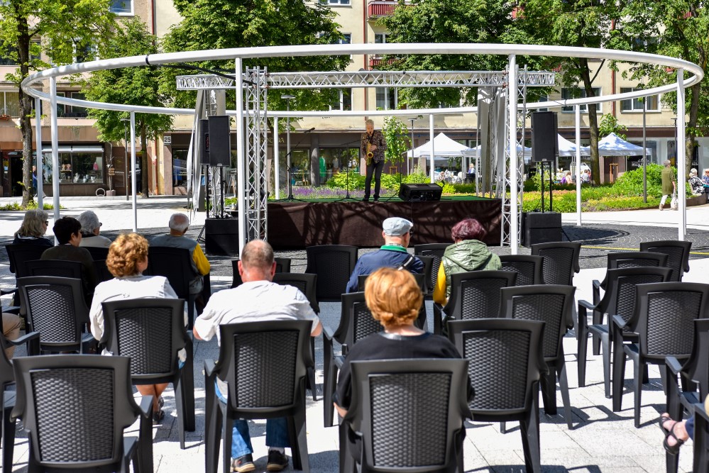 Šiandien į pietus su muzika pakvietė saksofonininkas Jonas Kepalas. Kerintys instrumento garsai užpildė visą Laisvės aikštę.