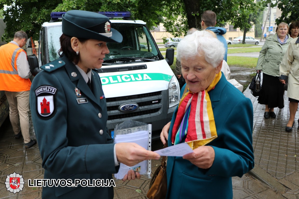 Panevėžio apskr. VPK Viešosios tvarkos ir prevencijos poskyrio specialistė I. Butkienė visuomenei pristatė prevencinį policijos automobilį, supažindino su automobilyje įrengtu mini muziejumi ir jo eksponatais, kurie labiausiai domino smalsius vaikus, konsultavo teisiniais klausimais.