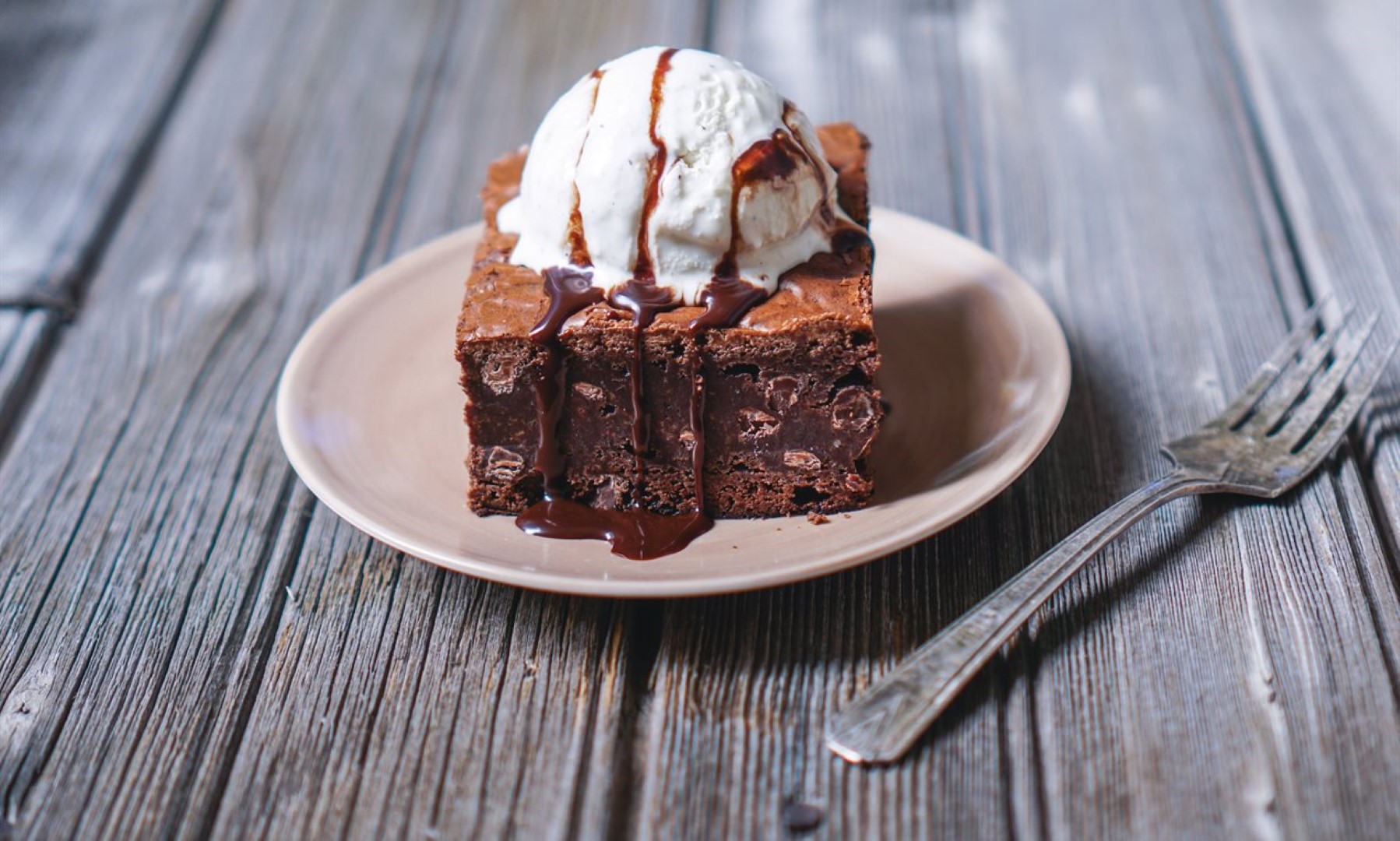 Reikės (6 porcijoms): 150 g šokolado (60–70 proc. kakavos), 150 g sviesto, 2 kiaušinių, 170 g rudojo cukraus, 50 g lazdynų riešutų be luobelės, 130 g miltų, 1 šaukštelio kepimo miltelių, 60 ml viskio, plaktos grietinėlės, ledų ir šviežių uogų – patiekti.