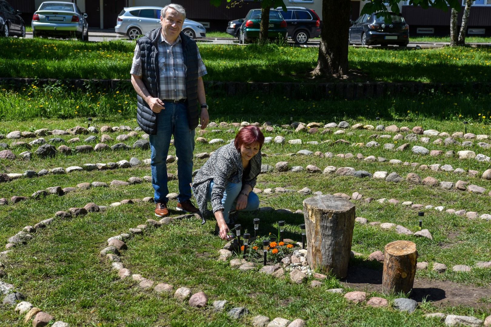 Daugiabučių supamoje pievoje įrengusi akmenų labirintą, panevėžietė pripažįsta iki šiol nežinanti, ar vieną dieną nesulauks institucijų reikalavimo jį išardyti.