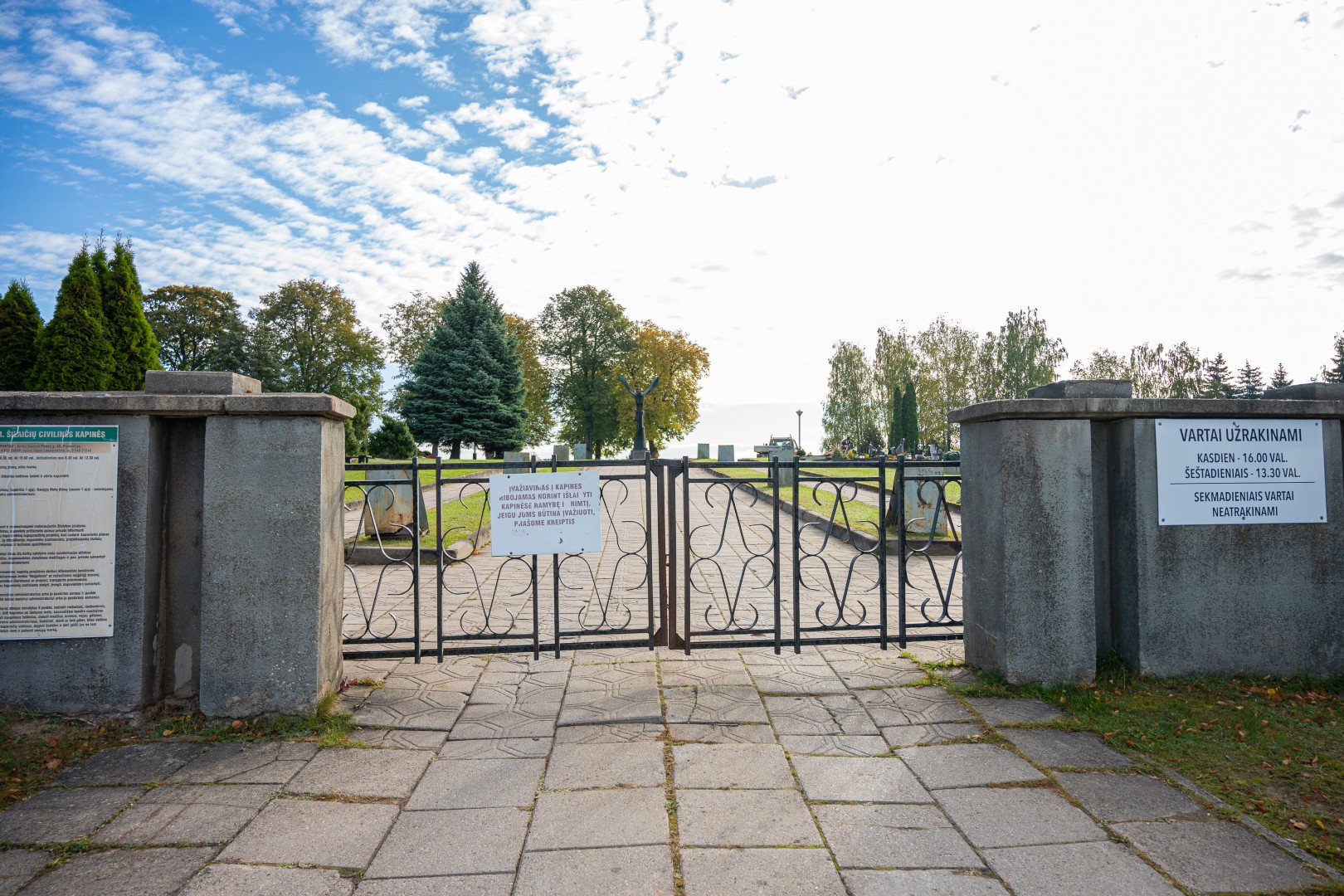 Sekmadieniais, kai kapinių administratoriams ne darbo diena, užrakinti visi vartai. Nerakinami tik varteliai pėstiesiems.