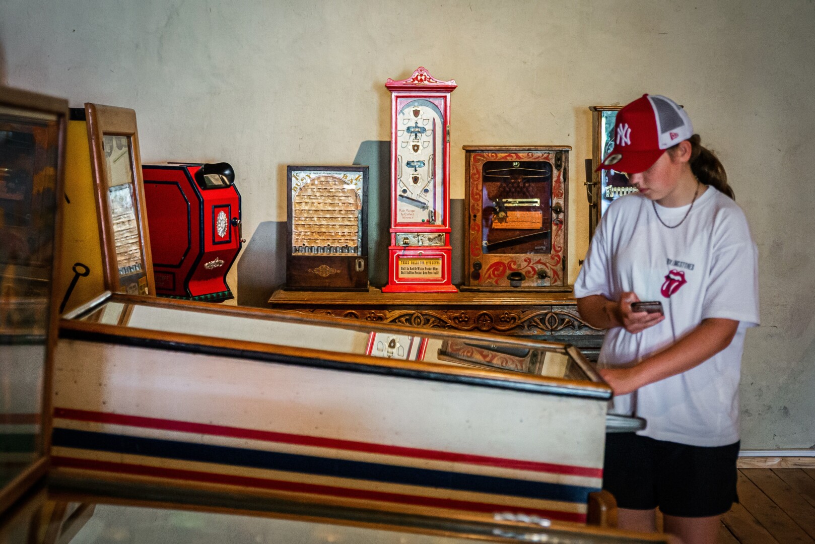 Ekspozicijoje galima rasti ir visame pasaulyje iki XX a. vidurio itin populiarų pinbolo žaidimą, kurio ištakos siekia XVIII a. Prancūziją. Šio žaidimo esmė – rankenomis suvaldyti ant žaidimo lentos iššaunantį kamuoliuką. Kai 1930 m. JAV atsirado pirmieji elektromechaniniai šio žaidimai aparatai, pinbolas išgyveno aukso amžių. 1950–aisiais tai buvo vienas geidžiamiausių žaidimų pramogų ir laisvalaikio vietose, skaičiuota, kad vien JAV buvo apie 15 tūkst. pinbolo aparatų. Jo populiarumas išblėso po poros dešimtmečių, kai vietą ant pjedestalo ėmė skintis arkadiniai vaizdo žaidimai, rodyti ir „Stranger Things” seriale.