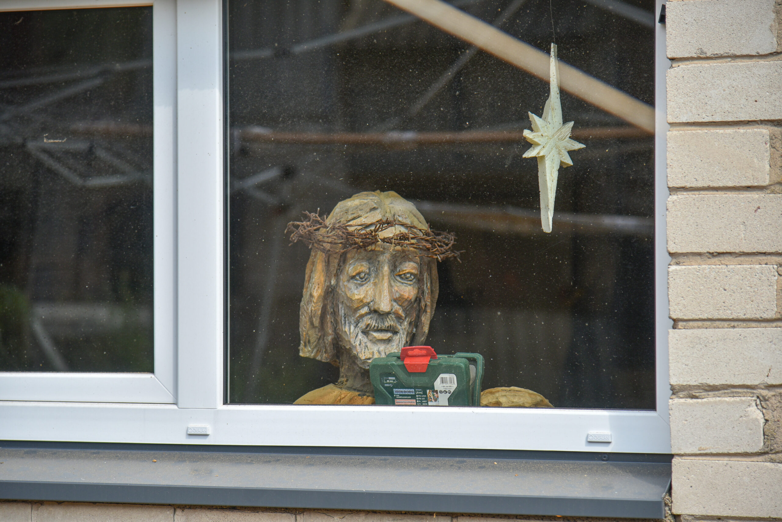 E. Tito dirbtuvėse rymo ir jau senokai išdrožtas, tik ne visai baigtas rūpintojėlis. Drožėjas niekaip neprisiruošia pagaminti paprasčiausio statulos elemento – lentų stogelio. Tai pernelyg paprastas darbas, tokiam nekyla rankos: staliaus darbų Eduardas, pasirodo, irgi nemėgsta.