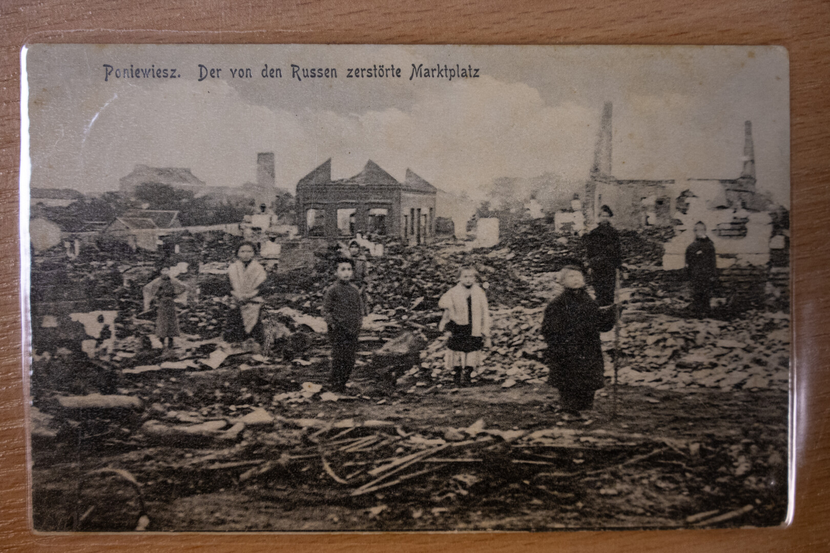 „Tarp labiausiai šokiravusių rastų senų nuotraukų – Laisvės aikštės nuotrauka su užrašu, kad rusai sugriovė miestą. Išties sunku patikėti, kad Pirmojo pasaulinio karo metais miesto centras buvo taip sugriautas. Realiai neliko nieko, tik griuvėsiai. Labai keista, kad tokie tragiški vaizdai tapo atvirukais. Neįsivaizduoju, kam tokius siųsti savo artimiesiems, bet buvo, kas siuntė. Ir galiu pasakyti, kad dažnai. Tokie atvirukai nėra retenybė. Kartkartėmis pasirodo parduodami. Vadinasi, jų tiražas turėjo būti nemažas, kad išliko iki šiol“, – svarsto A. Laumytė.