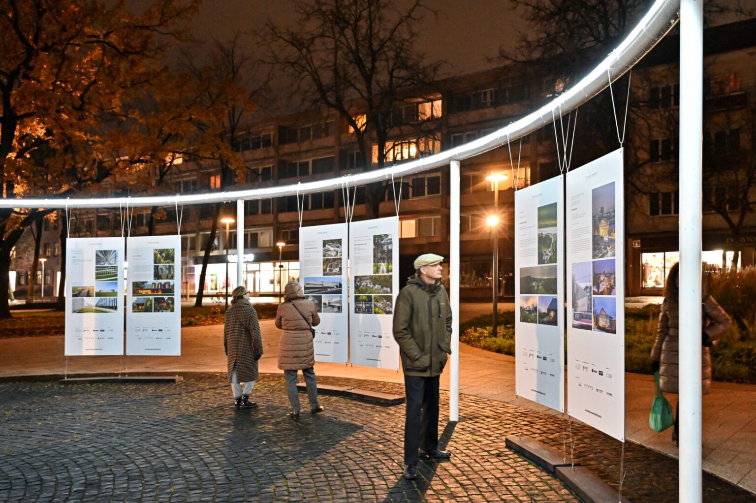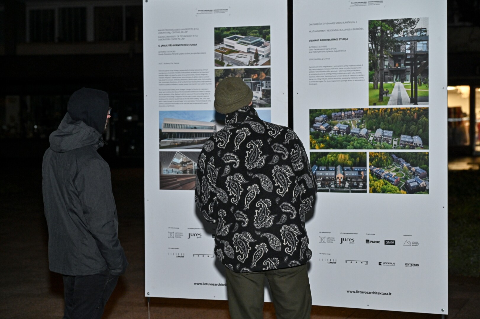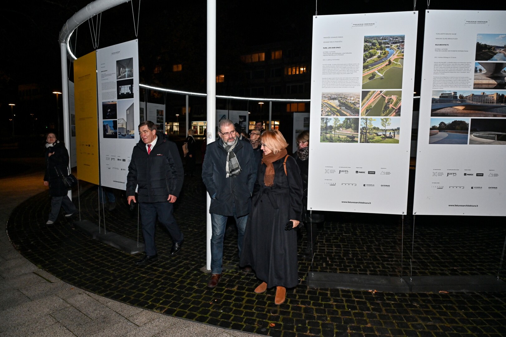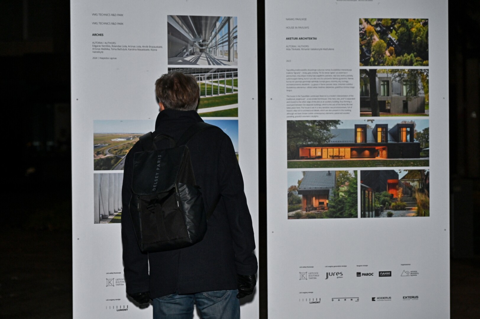 Panevėžio Laisvės aikštės rotondoje eksponuojama geriausių šalies architektūrinių darbų paroda „Žvilgsnis į save 2023–2024“.