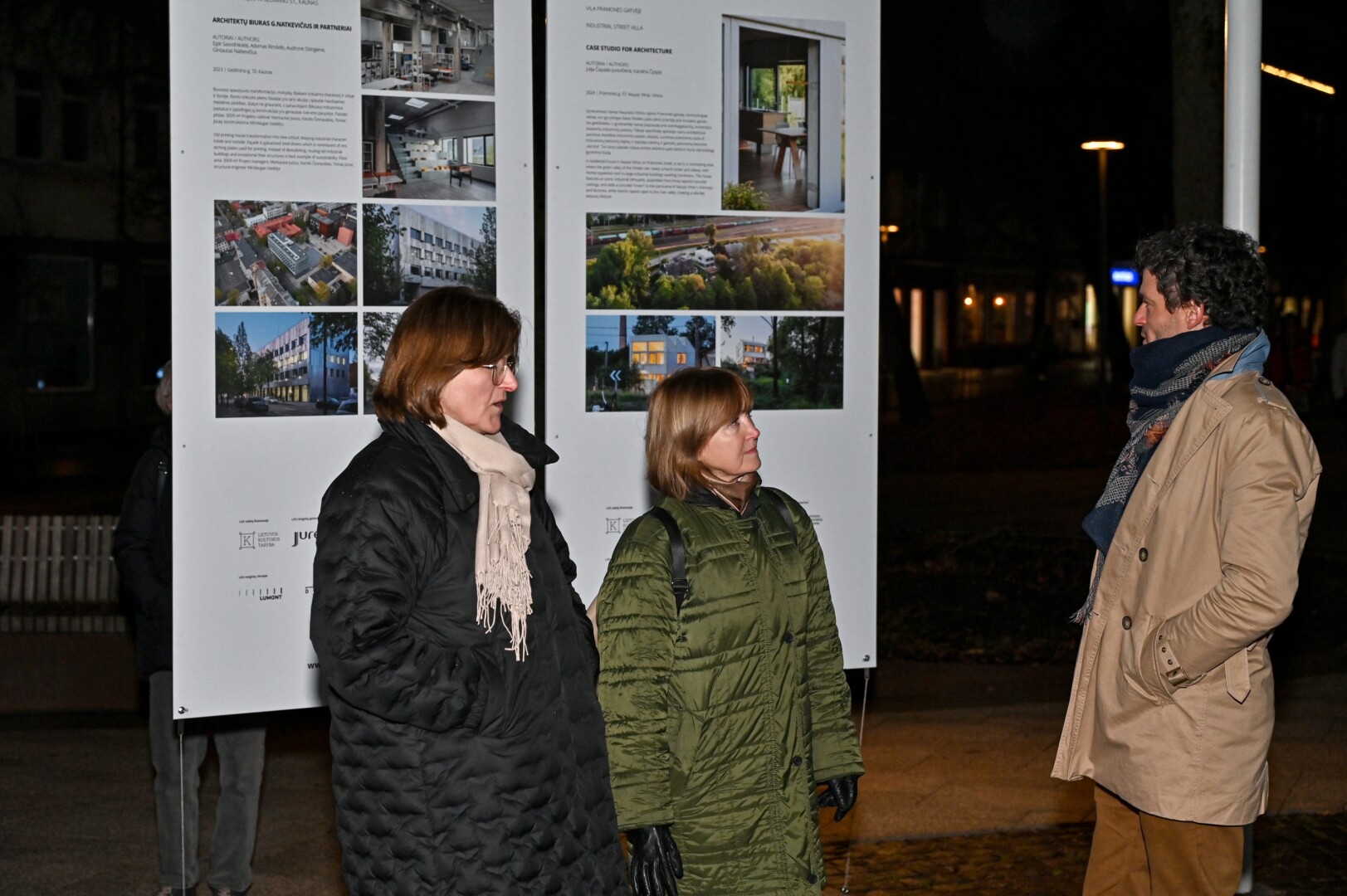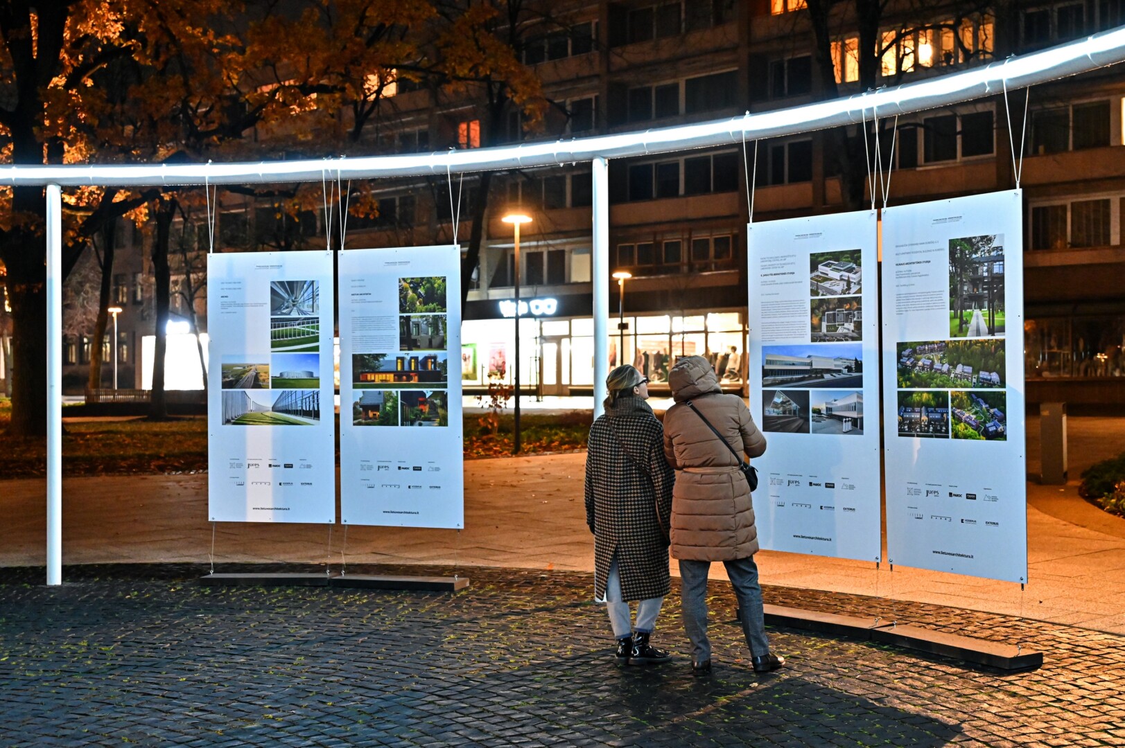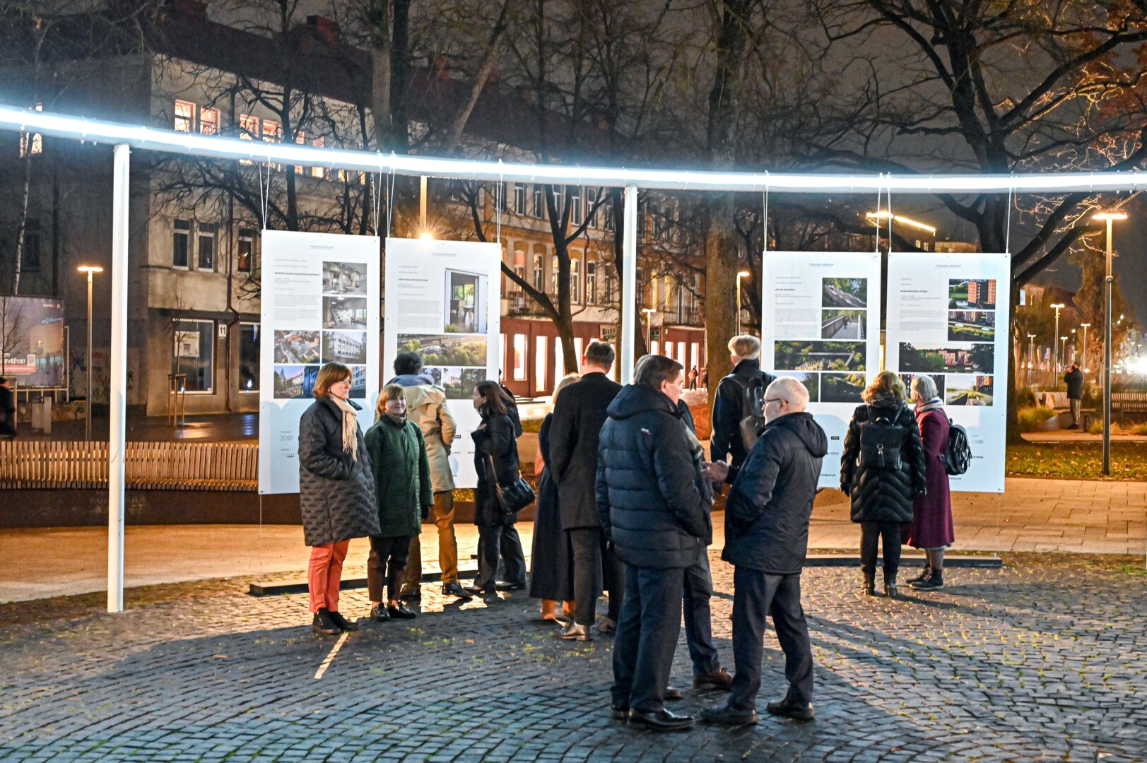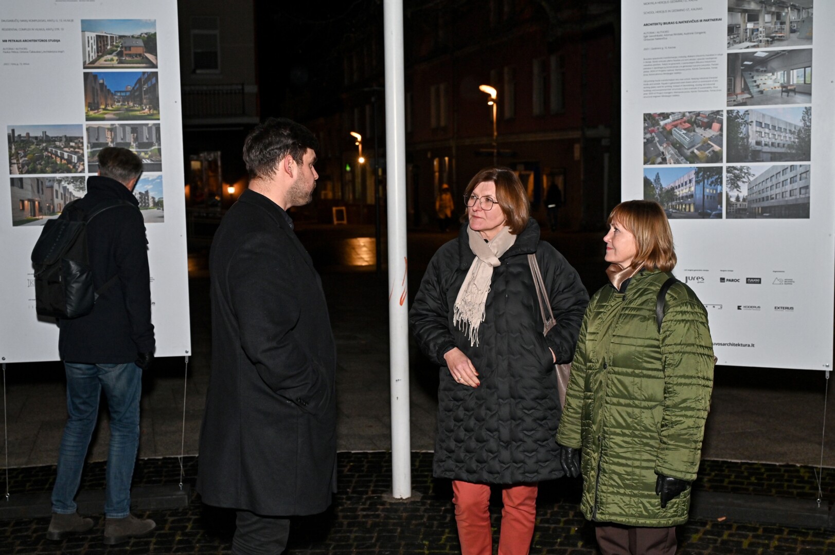 Panevėžio Laisvės aikštės rotondoje eksponuojama geriausių šalies architektūrinių darbų paroda „Žvilgsnis į save 2023–2024“.