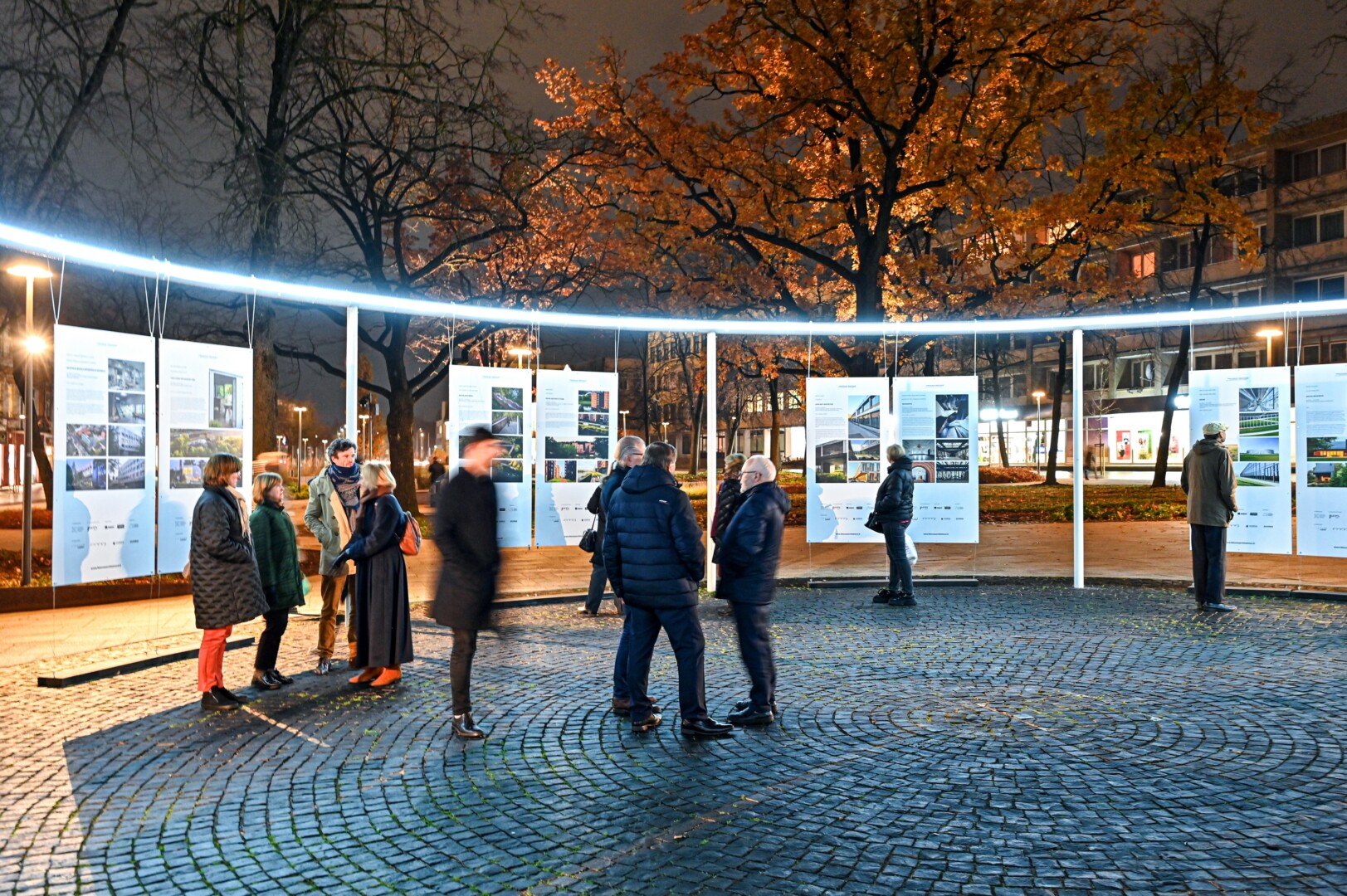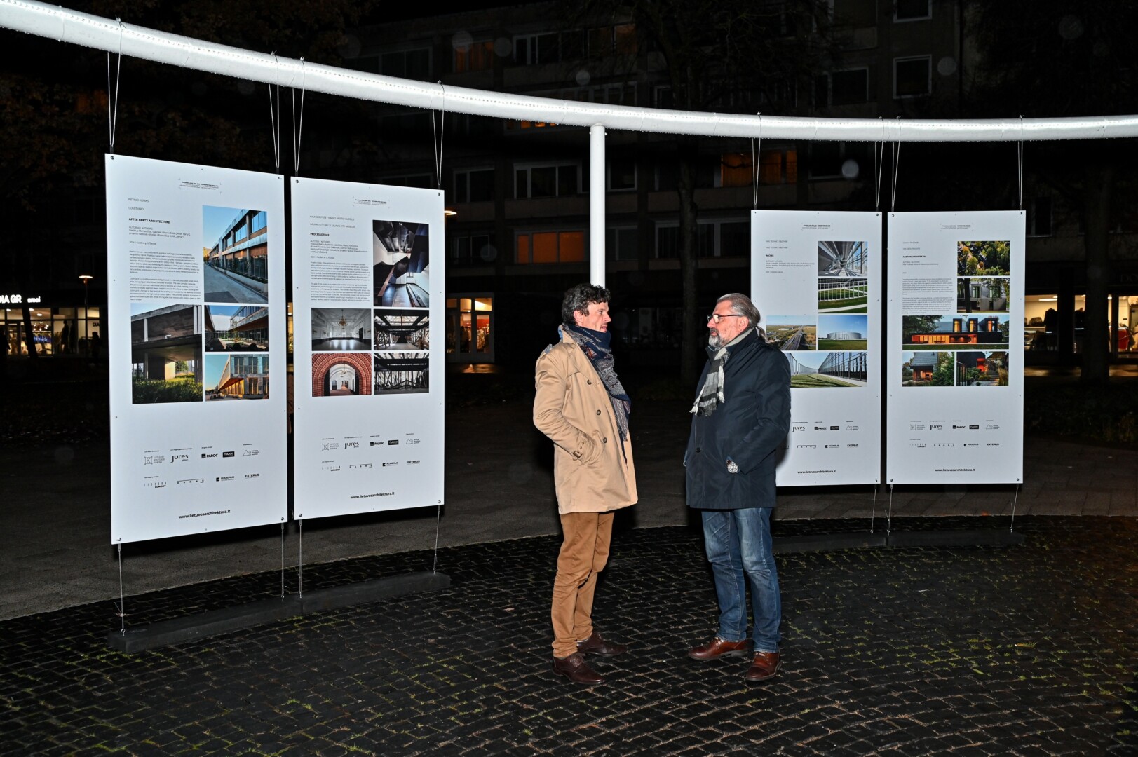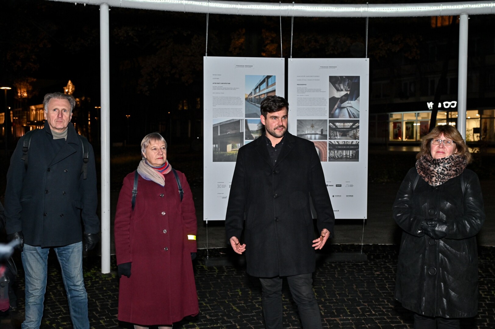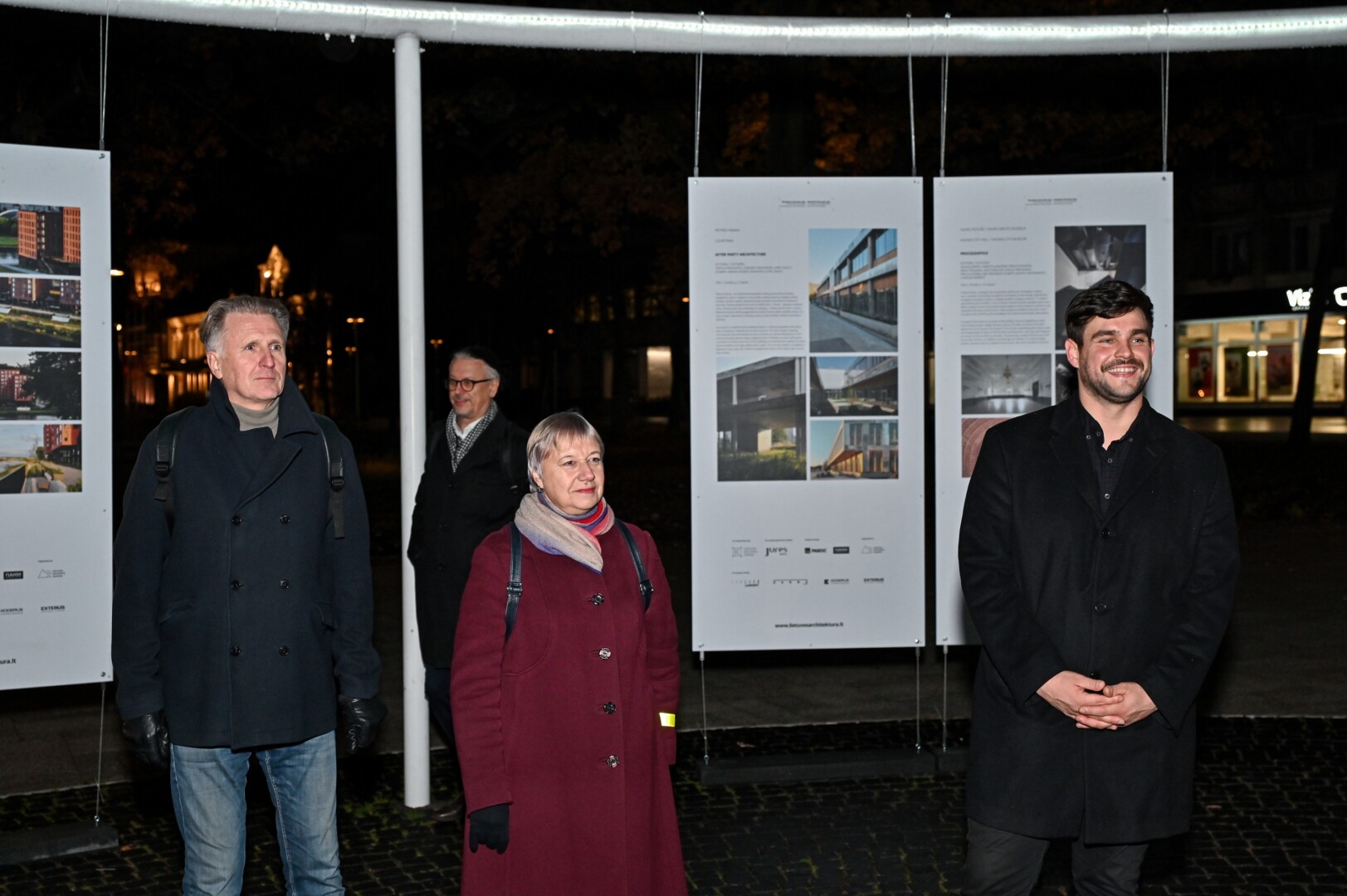 Panevėžio Laisvės aikštės rotondoje eksponuojama geriausių šalies architektūrinių darbų paroda „Žvilgsnis į save 2023–2024“.