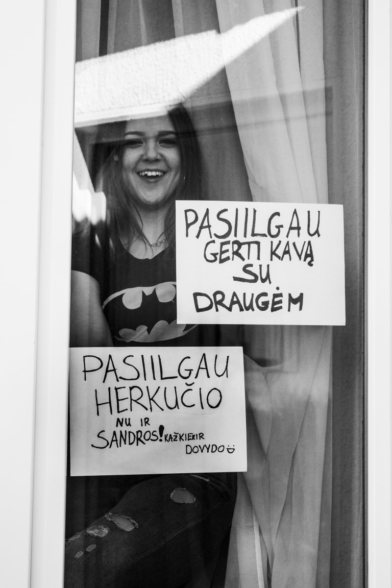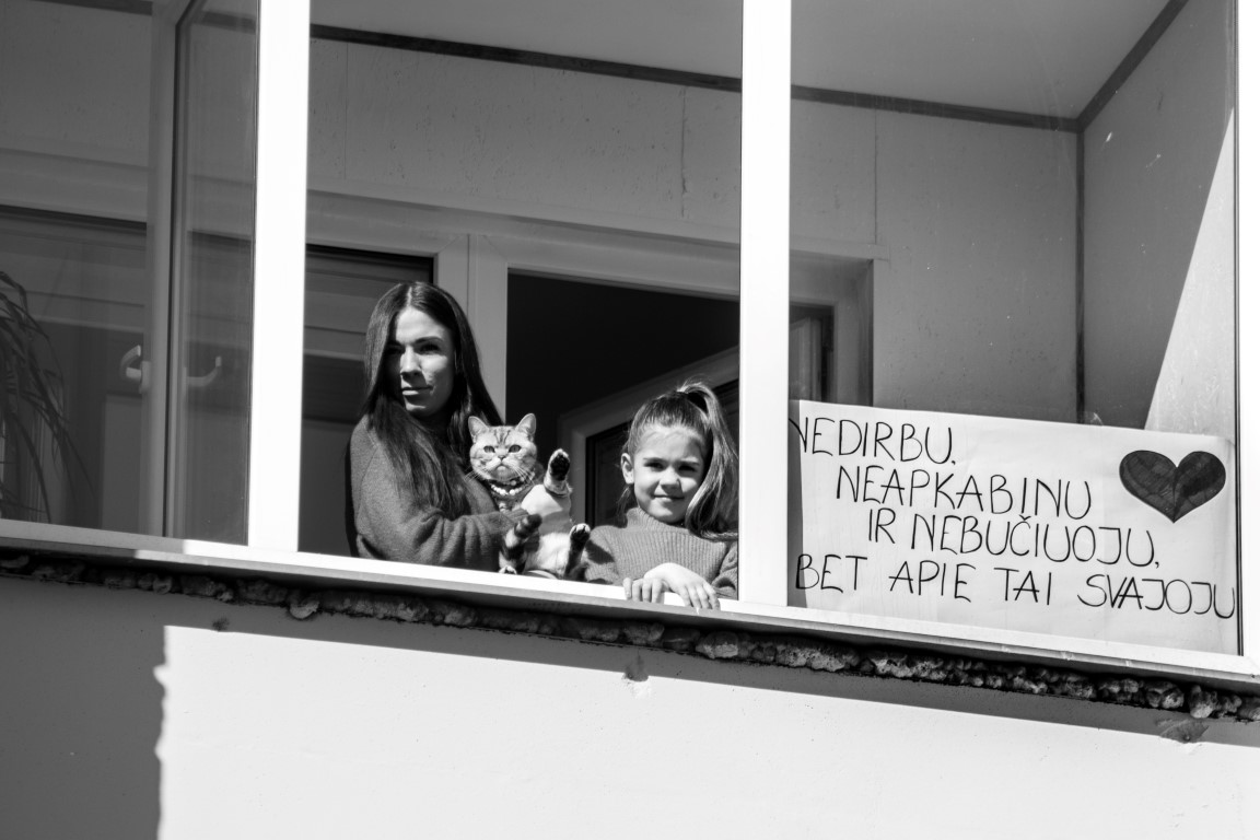 Kai vieni skundžiasi per karantiną nebeišmanantys, kuo užsiimti namuose, panevėžietė Sandra Tomkevičienė čiupo į rankas fotoaparatą ir išėjo fotografuoti užsidariusių miesto gyventojų. Žinoma, kaip ir pridera, Sandra laikosi visų saugumo nurodymų, o savo herojus fotografuoja tiesiog per namų langus.
