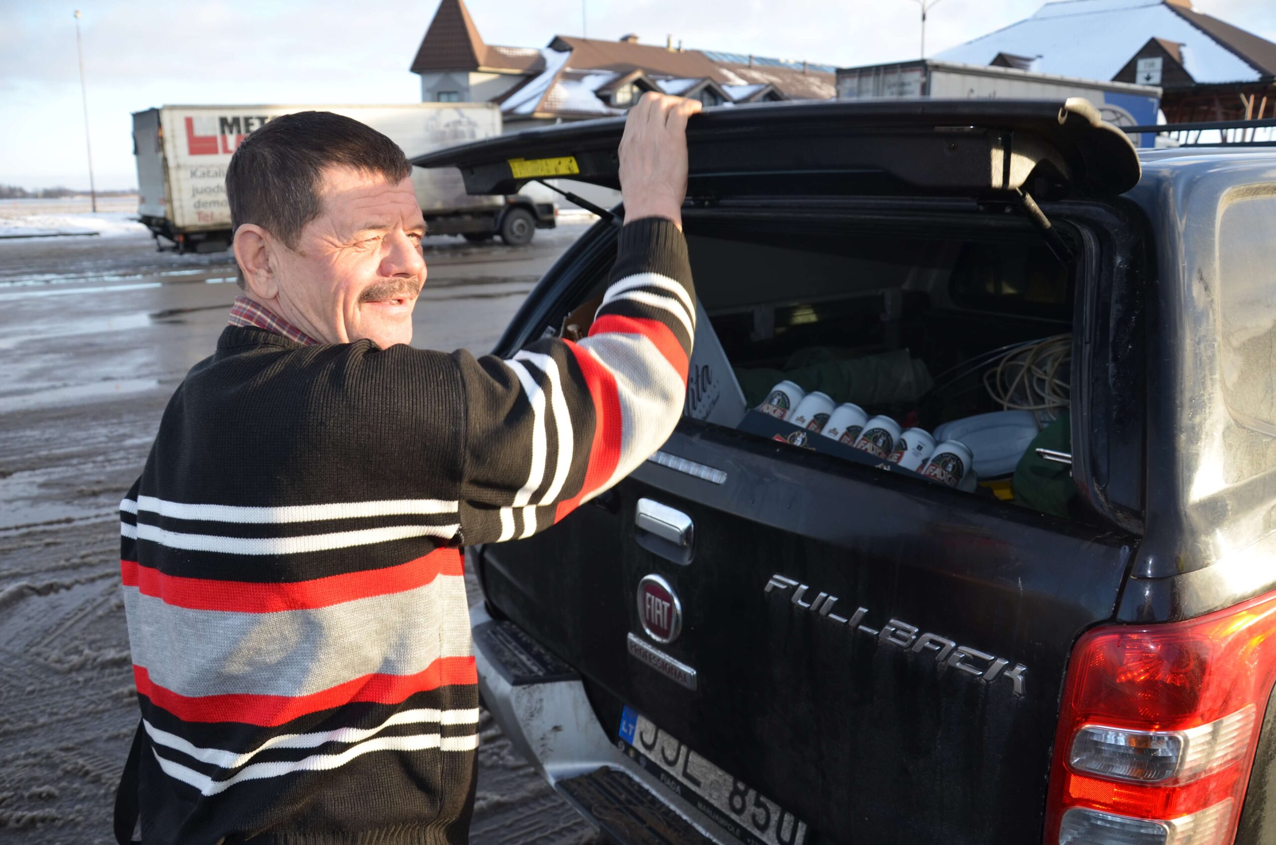Jų vairuotojai ir keleiviai į automobilių salonus bei bagažines krovė įvairaus alkoholio dėžes ir alaus pakuotes.