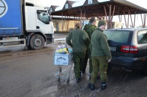 Į „žaliais lapais“ pažymėtus automobilius gėrimus krovė ir labai jaunai atrodantys vaikinai bei merginos. Nemažai alkoholio pirko ir jauni kariškomis uniformomis vilkintys lietuviai.