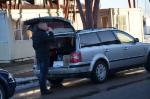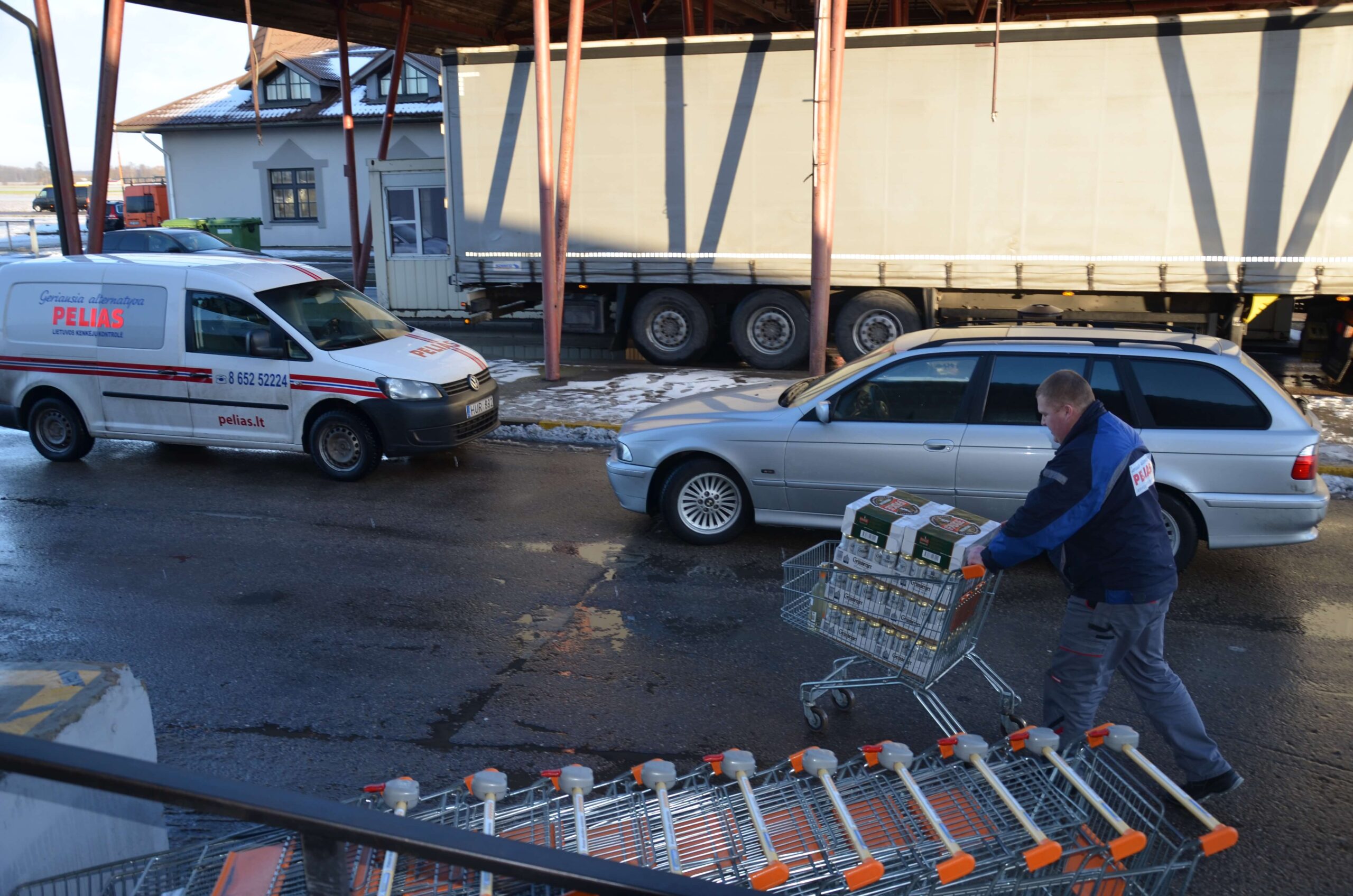 Didelės eilės parduotuvės viduje nebuvo, tačiau pirkėjų srautas buvo nenutrūkstamas. Tik labai retas lietuvis pirko po vieną ar po du alkoholio butelius. Vienas užkalbintas vyras sakė, kad jis grįža iš darbo Latvijoje ir ne pirmą sykį čia sustoja alkoholinių gėrimų sau bei pažįstamiems.