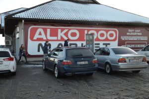 Parduotuvė „ALKO 1000market“ dirba kasdien iki 22 valandos. Kai pasukome namų pusėn, nebuvo panašu, kad prieššventinis alkoholio karavanas iš Lietuvos pusės būtų bent kiek sutrumpėjęs.