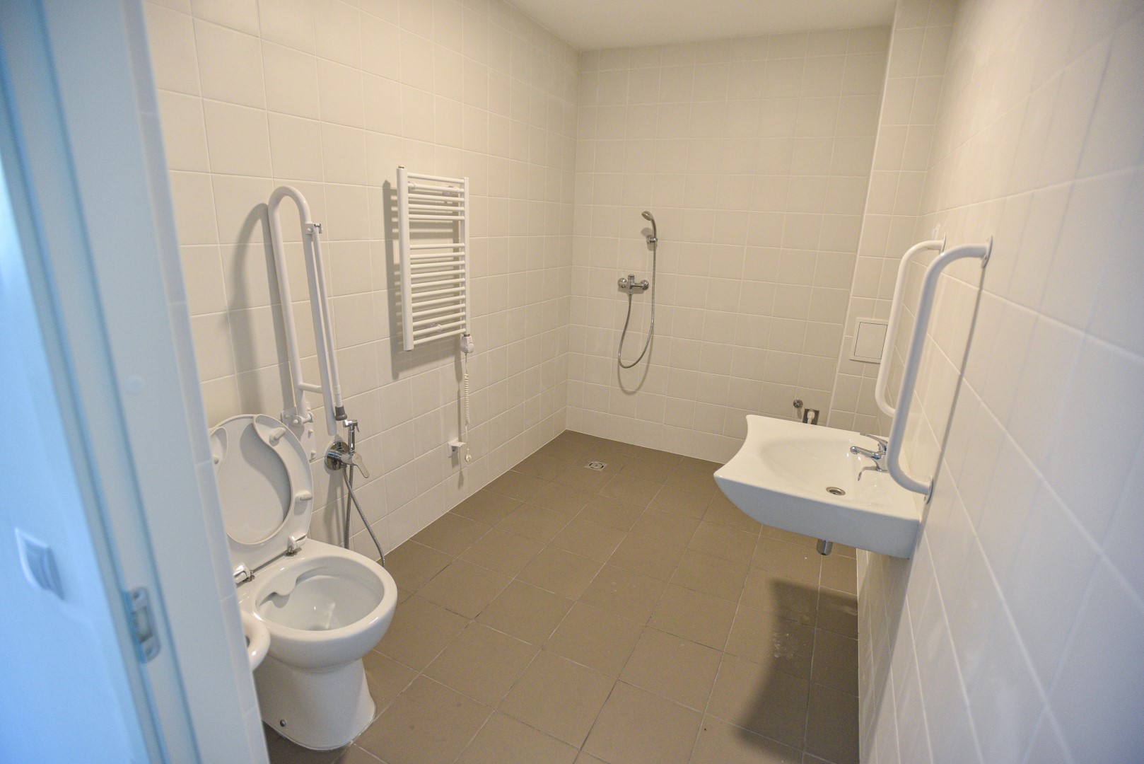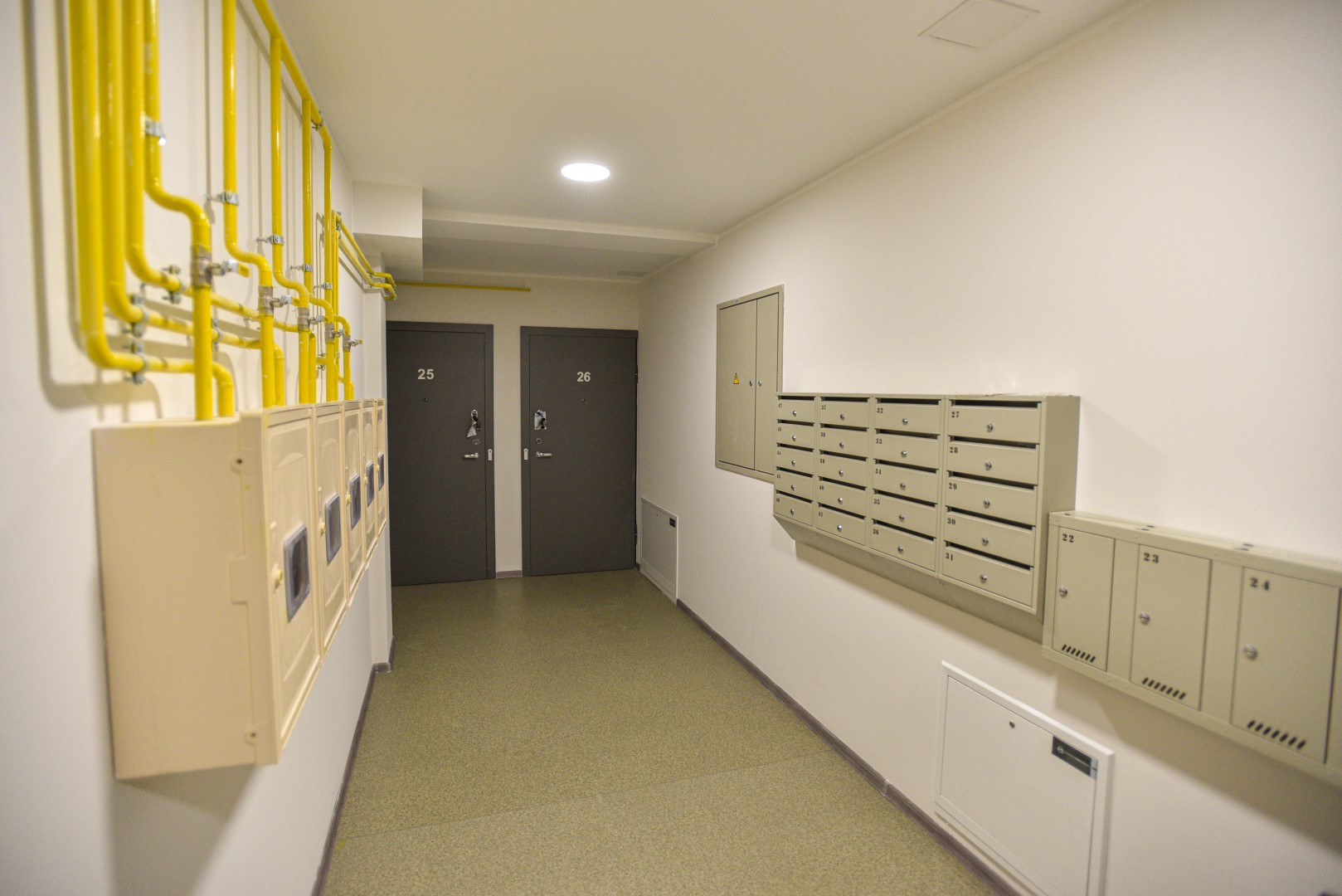 Socialinio daugiabučio bendros erdvės taip pat atrodo nepriekaištingai – laiptinėse nauji metaliniai turėklai, akmens masės plytelėmis iškloti laiptai ir koridoriai.