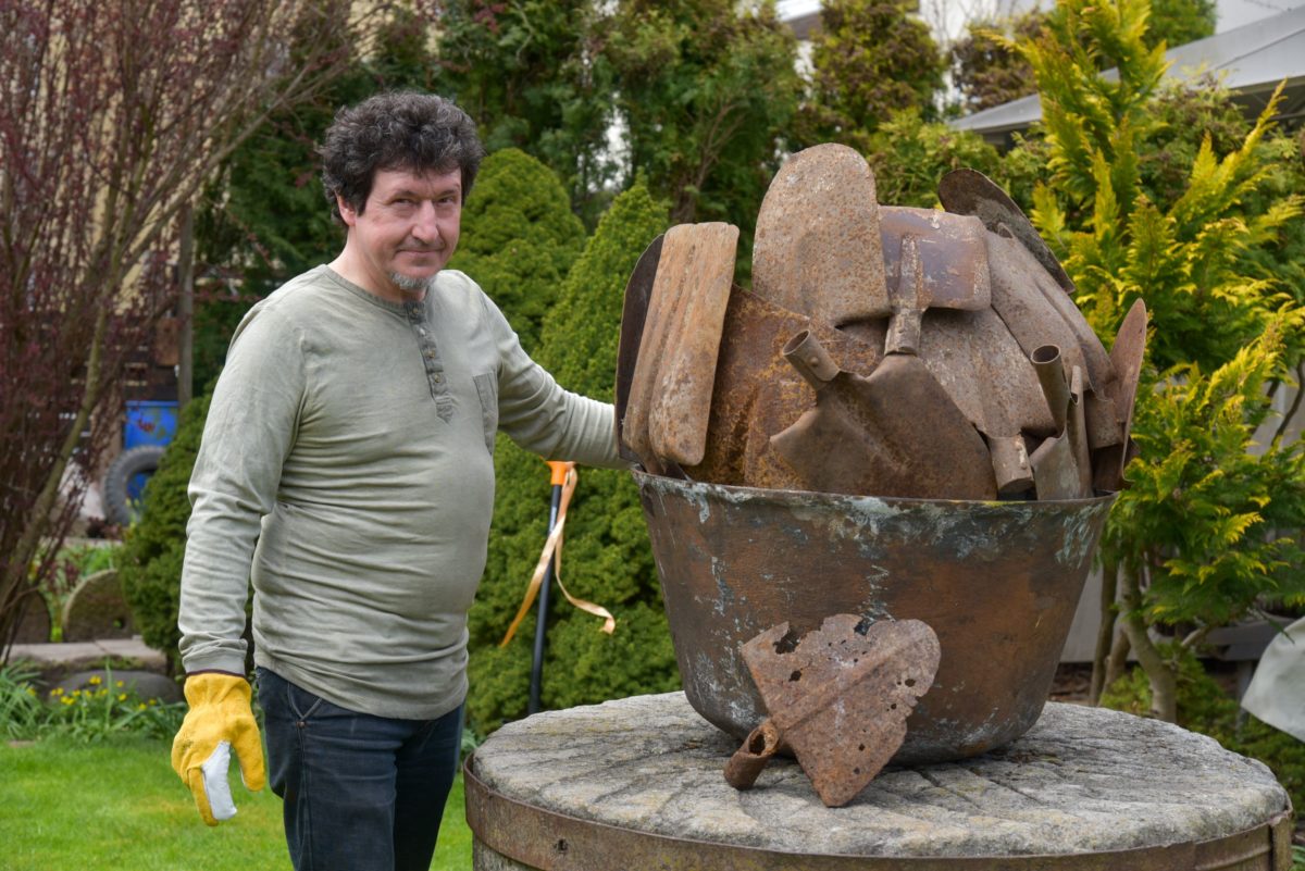 O surūdijusio įrankio jam prireikė ne šiaip sau – panevėžietis kurpia naują idėją. Iš kastuvų planuoja konstruoti didelę gėlę arba kankorėžį. Šiam projektui jau turi apie 60 senų rakandų. Jų daug gavo dovanų gimtadienio proga.