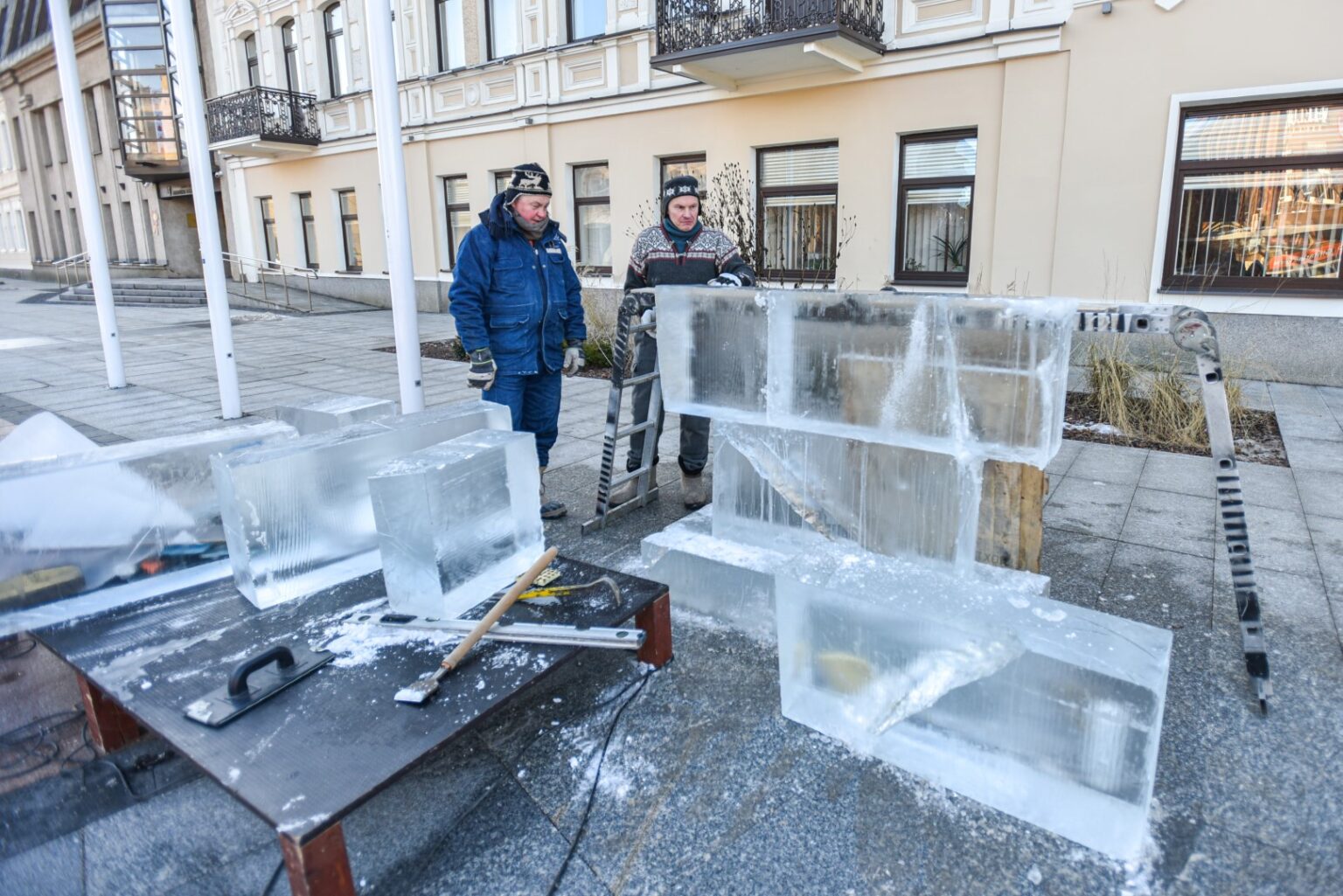Daugiau kaip po šimtą kilogramų sveriantys luitai į Panevėžio Laisvės aikštę atvežti iš Latvijos, kuri turi specialius šaldytuvus šiems laikyti. Tačiau kaip padaryti, kad ledas taptų meno kūriniu, kviečiančiu ne tik juo grožėtis, bet ir susimąstyti, diskutuoti, kelti probleminius klausimus – jau iššūkis skulptoriams.