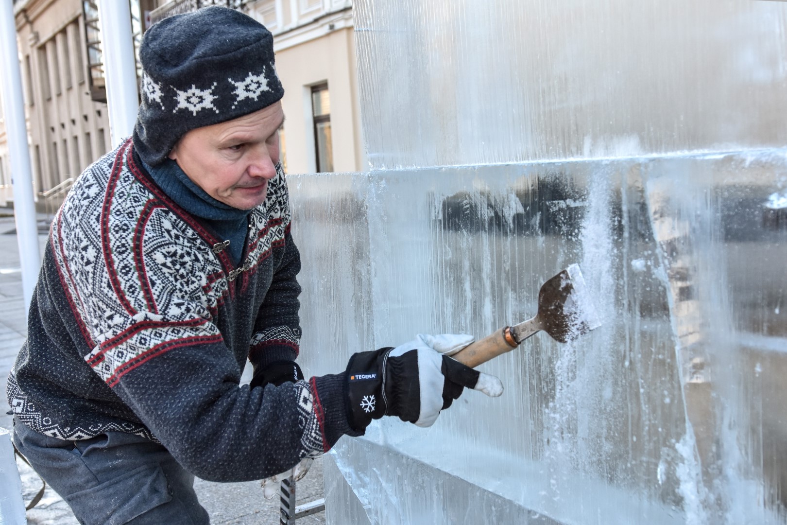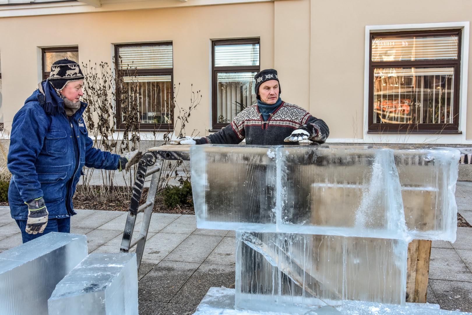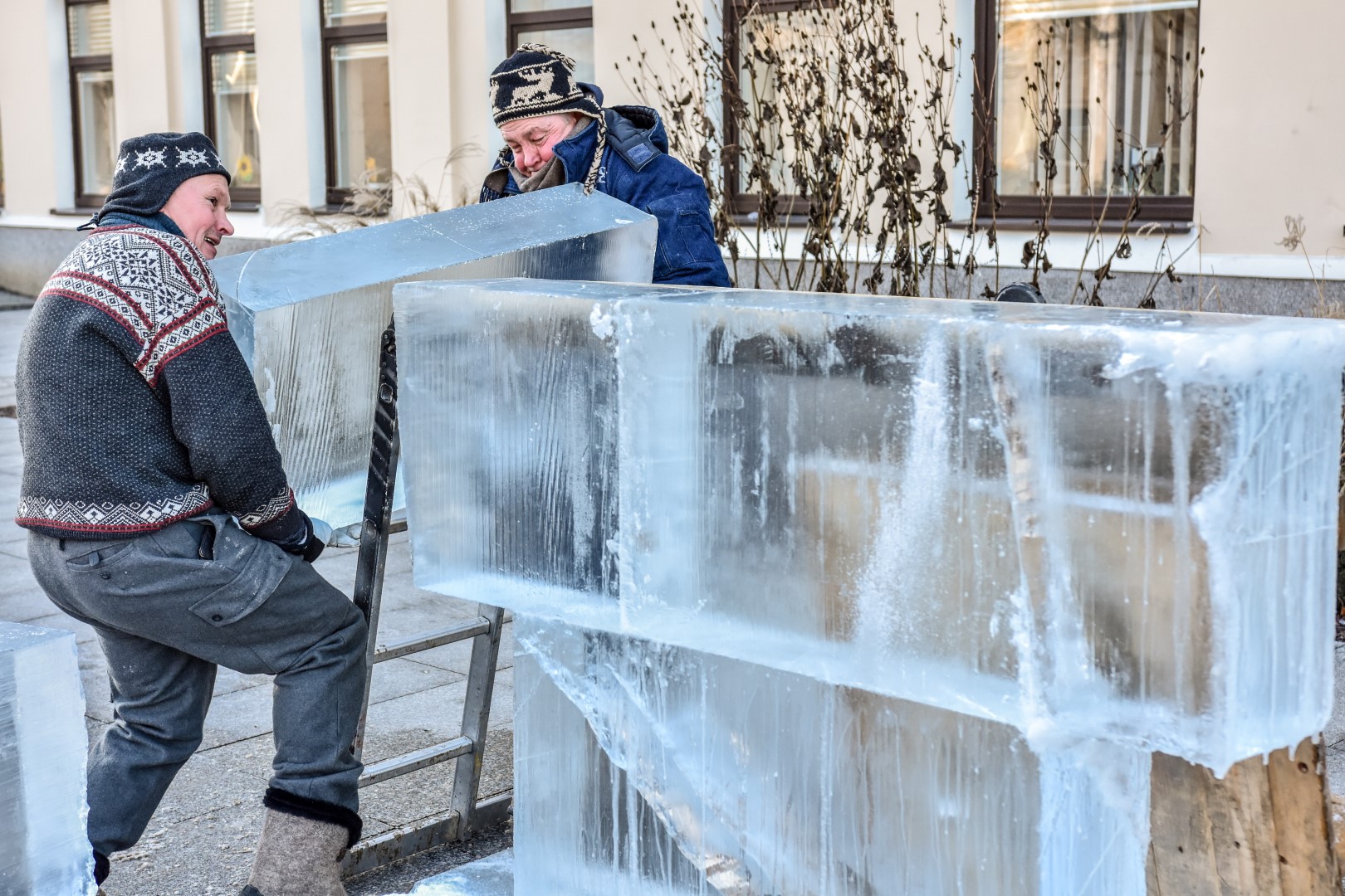 Daugiau kaip po šimtą kilogramų sveriantys luitai į Panevėžio Laisvės aikštę atvežti iš Latvijos, kuri turi specialius šaldytuvus šiems laikyti. Tačiau kaip padaryti, kad ledas taptų meno kūriniu, kviečiančiu ne tik juo grožėtis, bet ir susimąstyti, diskutuoti, kelti probleminius klausimus – jau iššūkis skulptoriams.