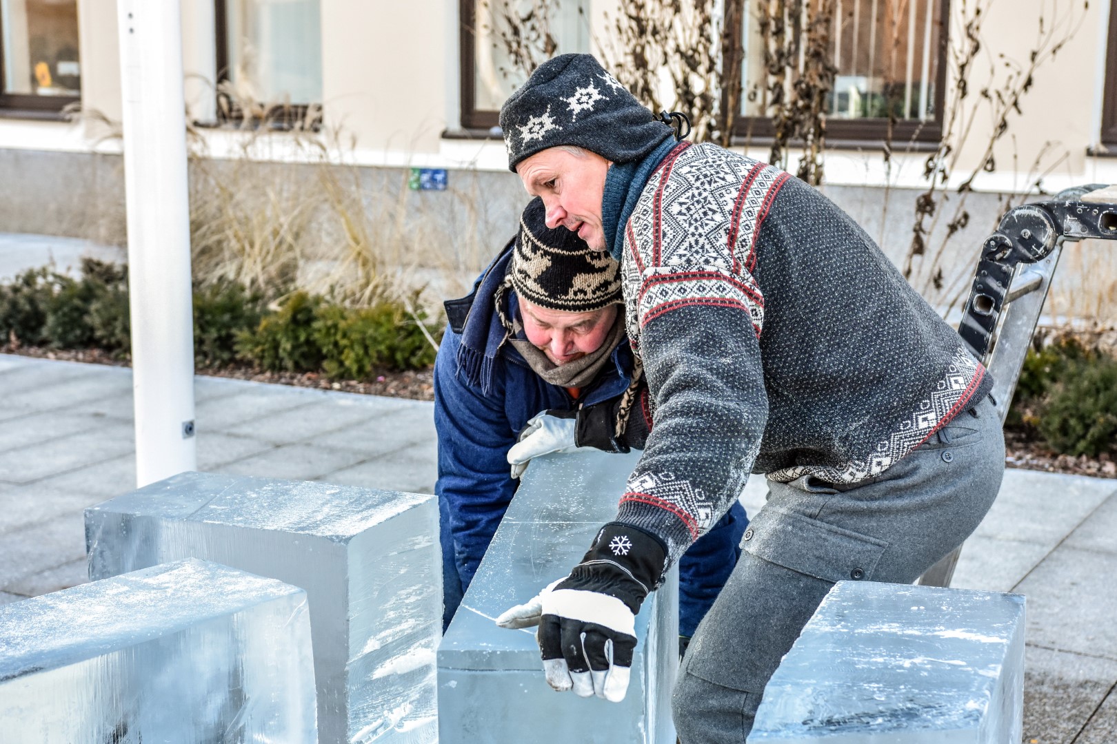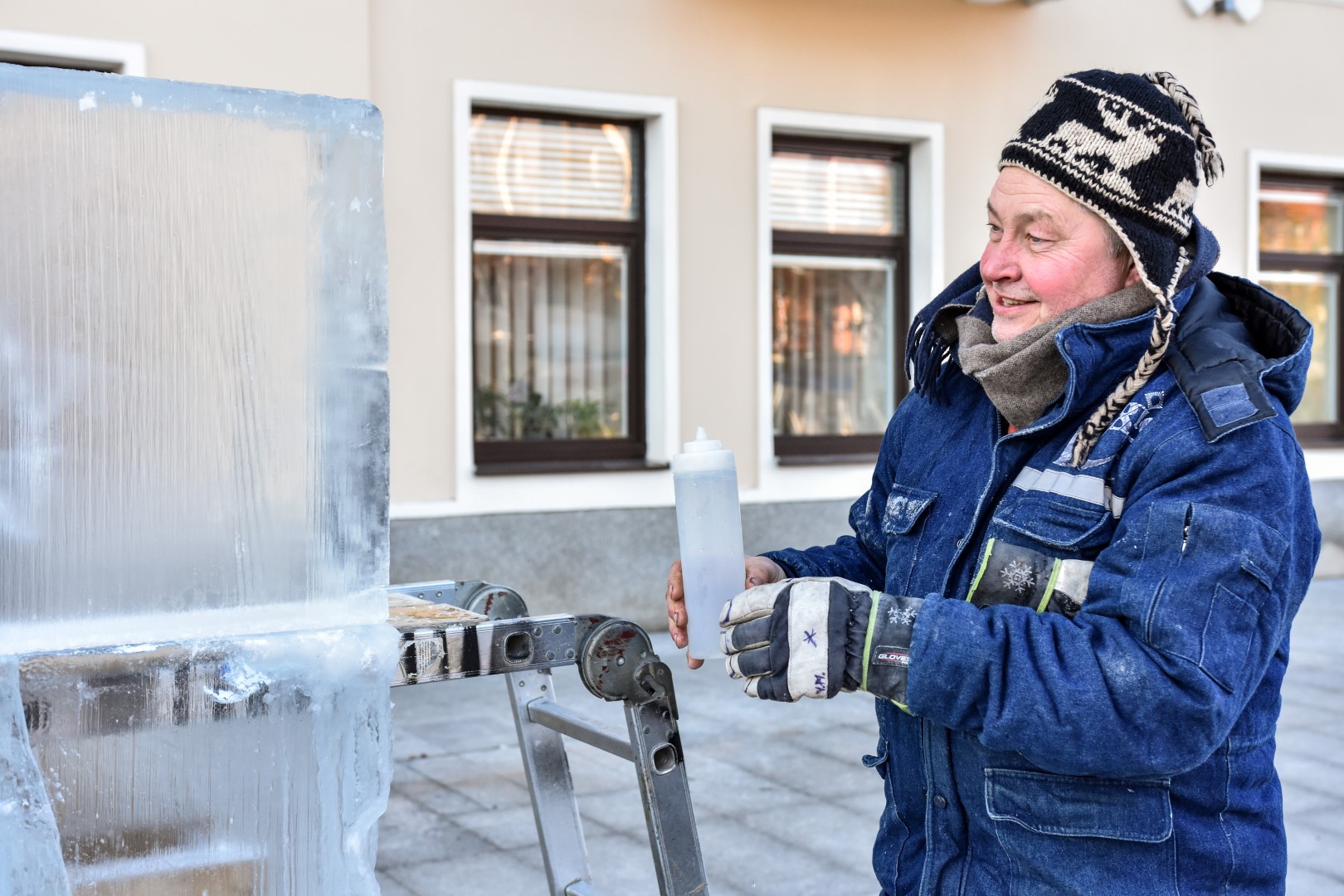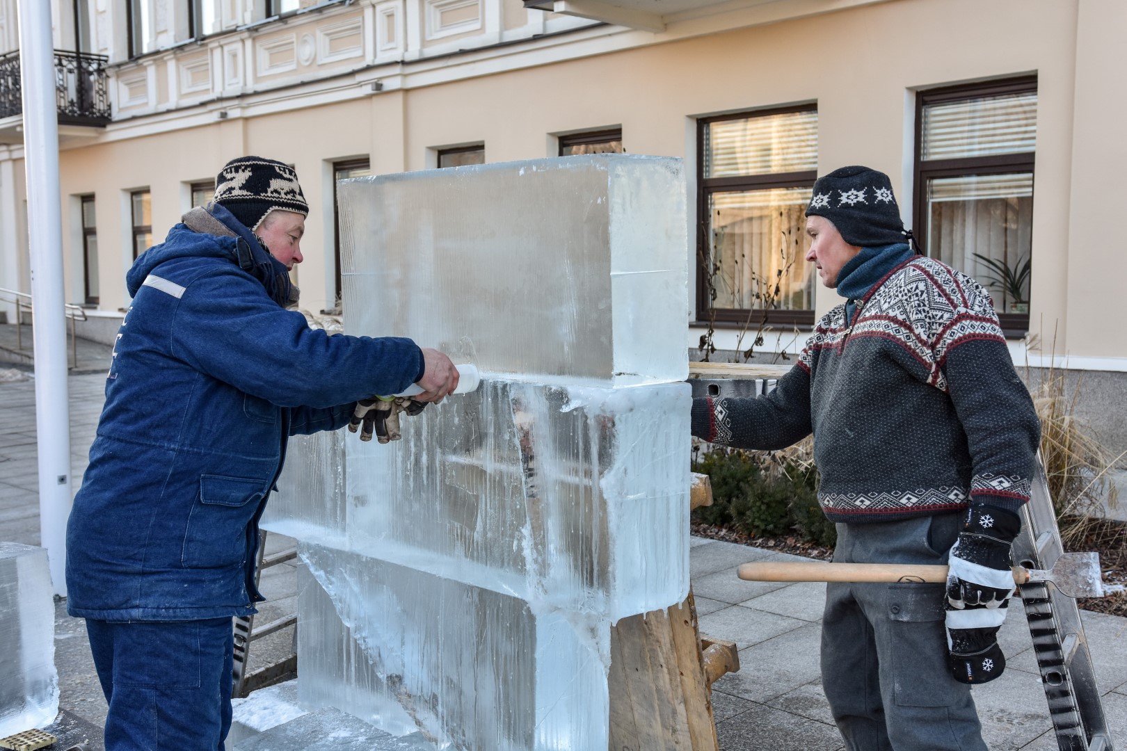 Daugiau kaip po šimtą kilogramų sveriantys luitai į Panevėžio Laisvės aikštę atvežti iš Latvijos, kuri turi specialius šaldytuvus šiems laikyti. Tačiau kaip padaryti, kad ledas taptų meno kūriniu, kviečiančiu ne tik juo grožėtis, bet ir susimąstyti, diskutuoti, kelti probleminius klausimus – jau iššūkis skulptoriams.