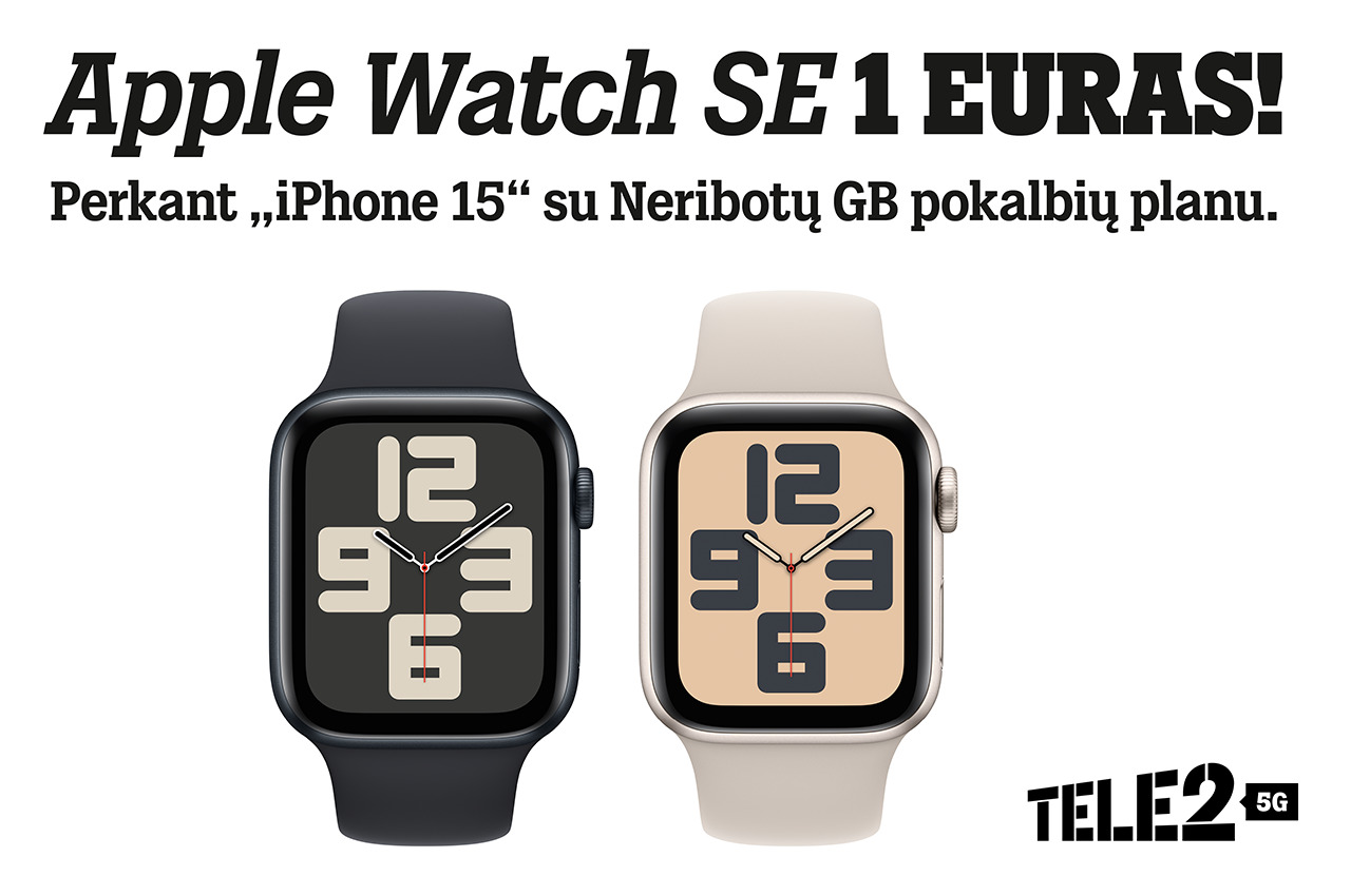 Operatoriaus klientų laukia ir kitas neįtikėtinas pasiūlymas – perkant išmanųjį telefoną „iPhone 15 128GB“ su neribotų GB planu (sutartį sudarant 24 mėn.), laikrodis „Apple Watch SE“ kainuos tik 1 Eur. Sumažintos kainos ribotą laikotarpį bus taikomos ir „Apple Watch Series 9“ bei „Apple Watch Ultra 2“ laikrodžių modeliams.