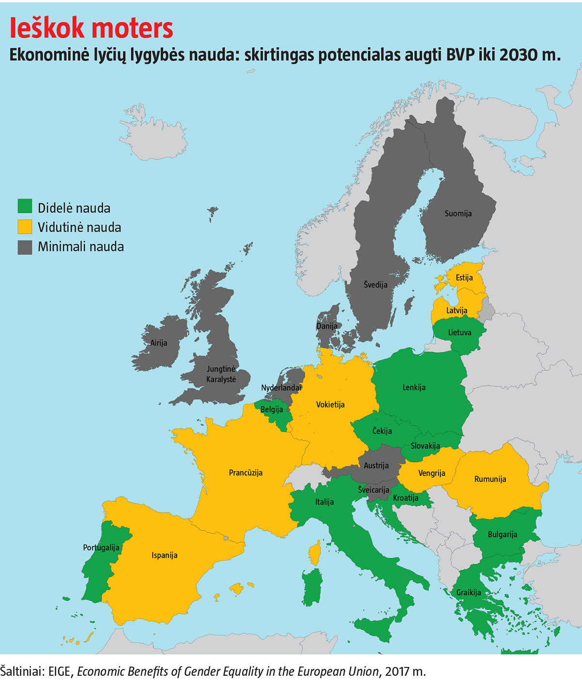 Pasak Europos lyčių lygybės instituto (EIGE) vyresniosios analitikės Jolantos Reingardės, vertinti turėtume ne tai, kaip atrodome ES, o kiek potencialo prarandame.