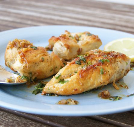 Užberkite žalumynų, tiekite su citrinos griežinėliais.