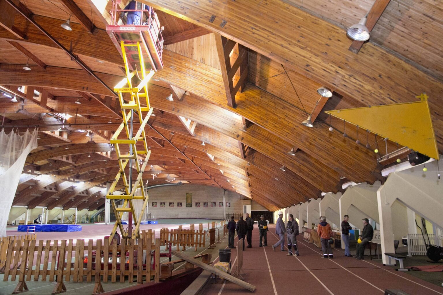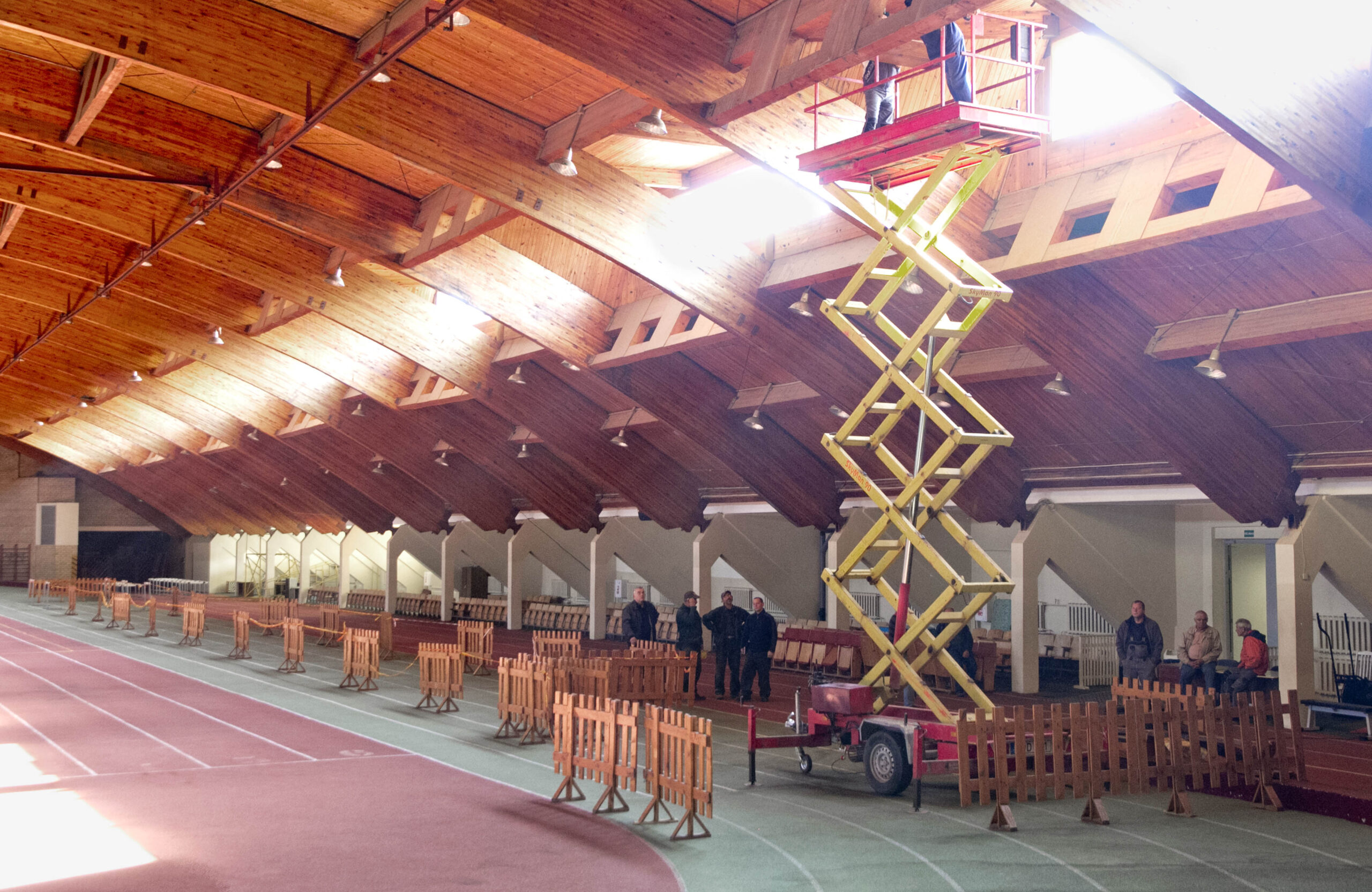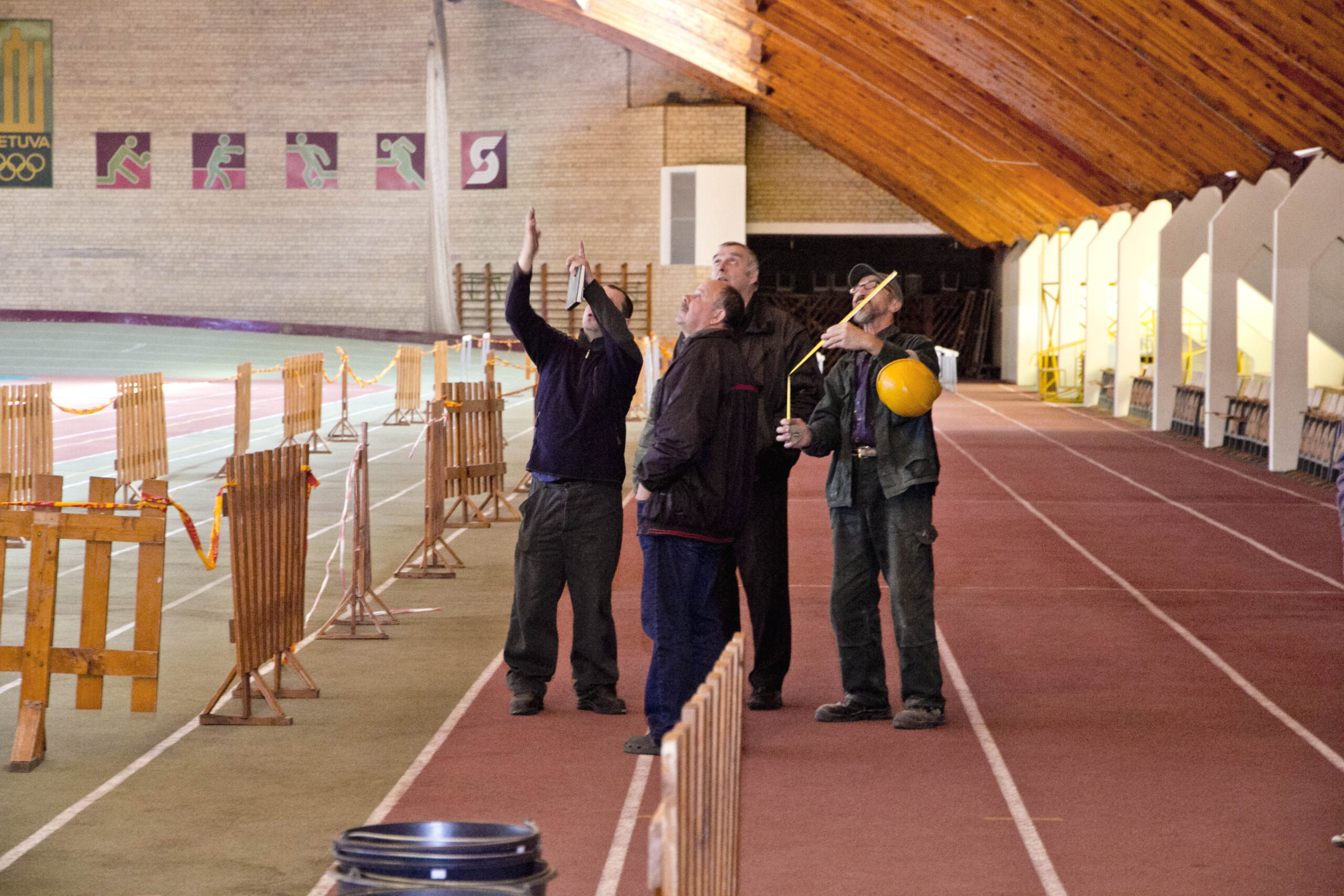 „Vizualiai apžiūrėjus didelio pavojaus nėra. Nuo stogo konstrukcijos atitrūko ne pagrindinė sija, tad aptvėrėme tik tą pavojingą vietą – maždaug 50 kvadratinių metrų iš penkių tūkstančių. Per tiek metų natūralu, kad konstrukcijos sutrūnijo. Kiek galime, dabar bandome užtikrinti saugias sąlygas sportininkams ir laukiame, kol statinį įvertins techninės priežiūros specialistai“, – „Sekundei“ aiškino S. Raziūnas.