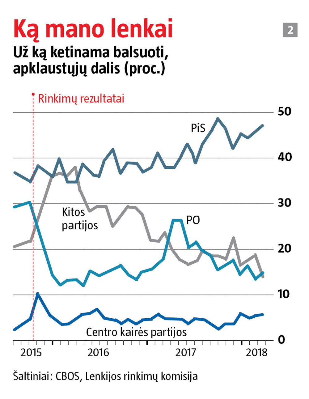 Jei norėtumėte žvilgtelėti, kaip atrodo Lenkija valdant populistinei Teisės ir teisingumo partijai (PiS), įsijunkite valstybinės televizijos TVP rodomas žinias. Naujienų laida pradedama kompiuterine animacija: parodomos žymios Lenkijos vietos, tada Varšuvos karališkosios pilies bokšto laikrodis stambiu planu. Lengviausiai atpažįstamo sostinės pastato, milžiniškų Kultūros ir mokslo rūmų iš sovietinių laikų, nepamatysi. Galiausiai ekrane pasirodo žinių vedėjai ir pradeda vergiškai girti PiS, partijos kritikus vadindami klastingais kriptokomunistais.