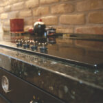 Architektė visur naudojo tikras, laikui nepavaldžias medžiagas ir itin daug savo istoriją turinčių detalių. Sienų plytos buvo atvežtos iš Kaliningrado senamiestyje griaunamų pastatų. Kaltinio ir tamsiai dažyto metalo ornamentus ant durų pagamino lietuvių kalviai pagal autorės piešinį, durų rankenos atgabentos iš Maskvos. Medžio masyvo spinteles virtuvėje papildė senovinio dizaino buitinė technika bei granito stalviršis.