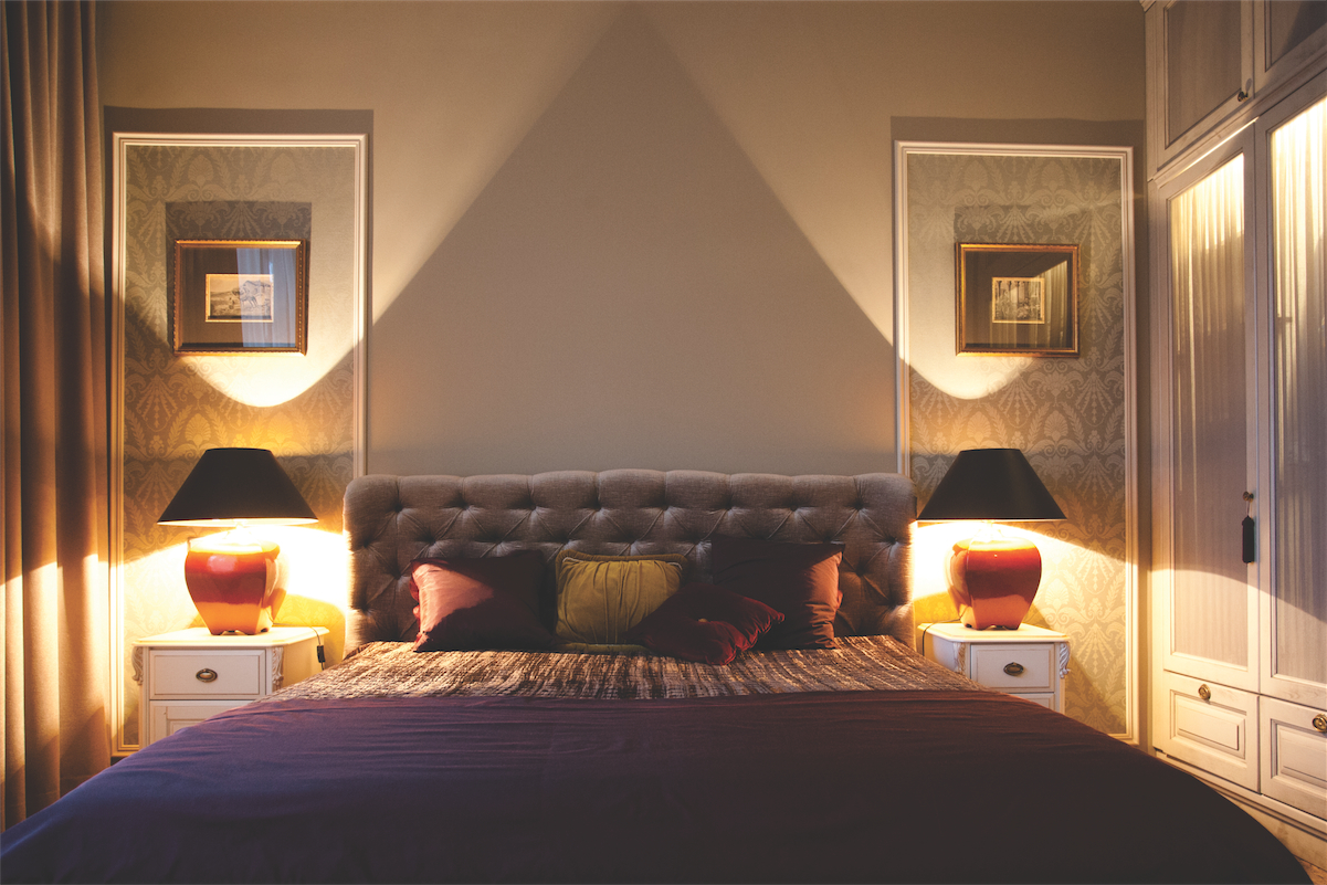 Architektė sumaniai išnaudojo paslėpto apšvietimo galimybes ten, kur reikia daug šviesos, o intymesnėse skaitymo ar poilsio zonose pritaikė jaukesniam vietiniam apšvietimui skirtus šviestuvus. Šeimininkų miegamajame, išnaudojant dviejų lygių lubų konstrukciją įrengtas neakinantis tolygus apšvietimas. Neįprastu šviesos šaltiniu miegamajame tapo šviečianti spinta – tai suteikia jai lengvumo ir taip išplečia erdvę.