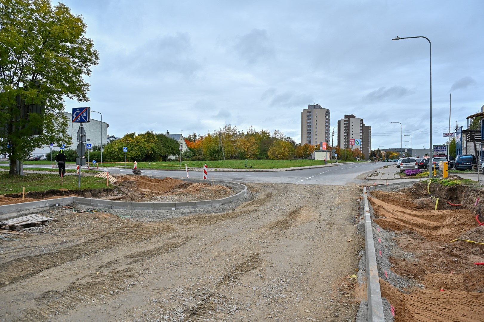 Šiuo metu baigiami įrengti pagrindai ir statomi gatvės bortai.