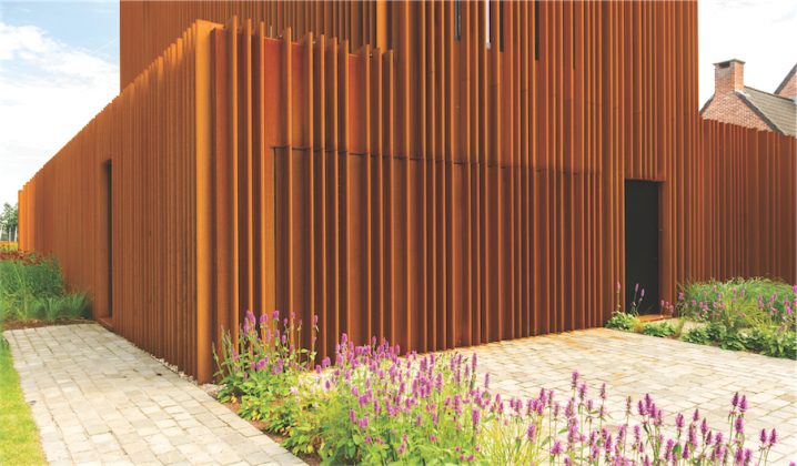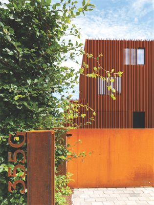 „Surūdijęs“ metalas daugelio architektų mėgstamas kaip unikali, natūrali fasadų medžiaga, puikiai deranti tiek urbanistinėje – miesto, tiek užmiesčio aplinkoje. Du namus Lietuvoje, kurių fasadų apdailai panaudotas būtent šis plienas, prieš keletą metų žurnalo puslapiuose jau esame pristatę.