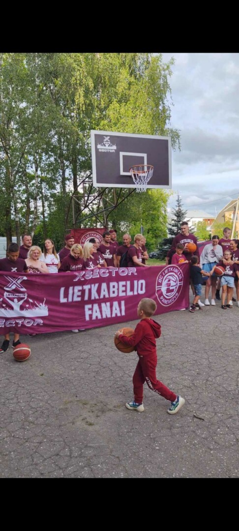 Viename Tulpių gatvės daugiabučio kieme pasirodęs, „Lietkabelio“ atributika vilkintis krepšinio gerbėjų būrys, net ir pasibaigus krepšinio sezonui, vėl susitiko kilniam tikslui – atnaujinti senutėlę, sutręšusią krepšinio aikštelės lentą. Veikiau – tai, kas iš jos buvo likę.