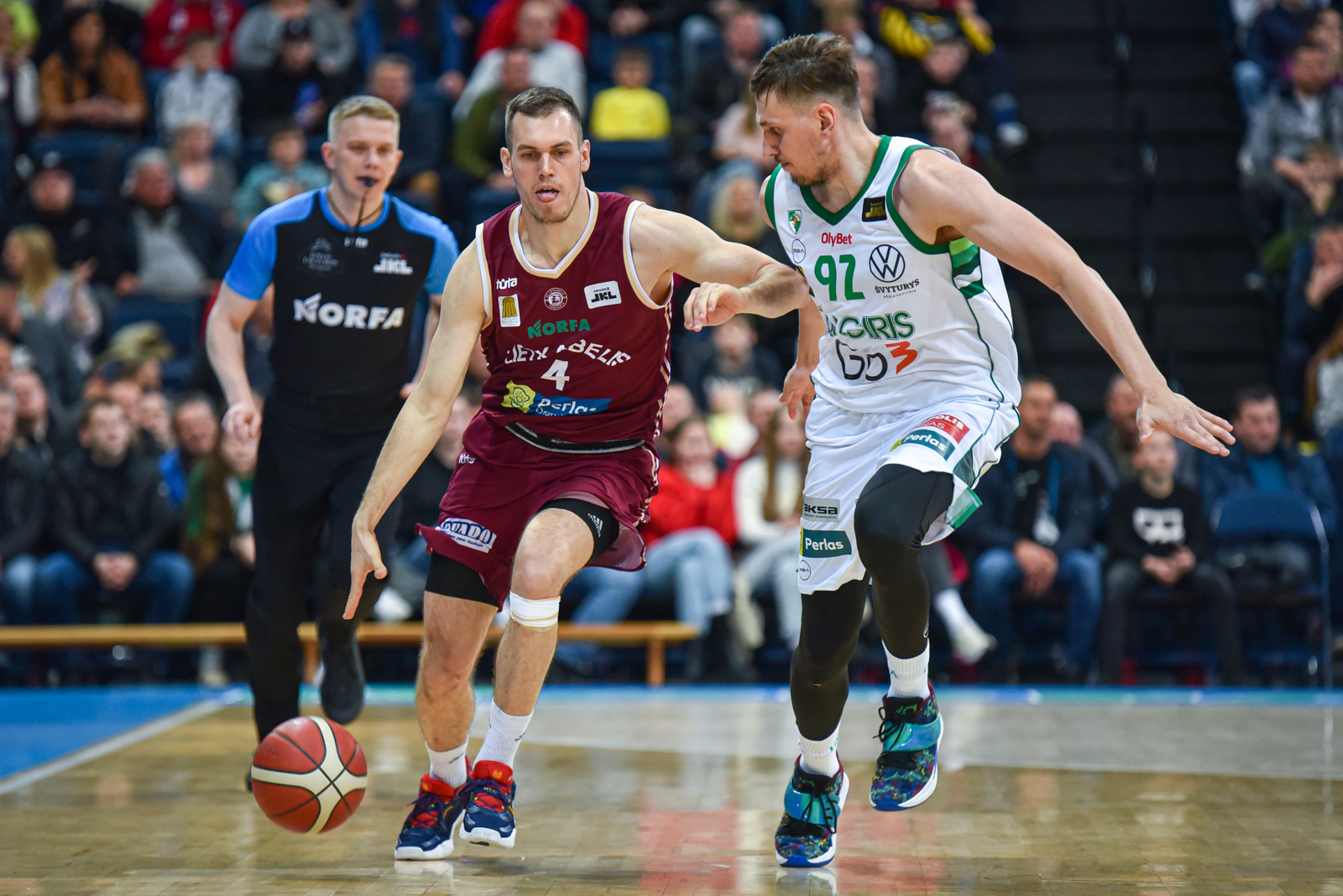 Rungtynių pradžia žadėjo atkaklią kovą. Panagiotis Kalaitzakis sudėtingu tritaškiu išvedė į priekį šeimininkus – 5:4. Žalgiriečiams nesisekė perimti rungtynių kontrolės – taiklus Kasparo Bėrzinio tritaškis padidino „Lietkabelio“ atotrūkį iki 5 taškų (17:12). Su pirmojo kėlinio sirena latvis smeigė dar vieną metimą, leisdamas panevėžiečiams susikrauti 8 taškų persvarą – 24:16.