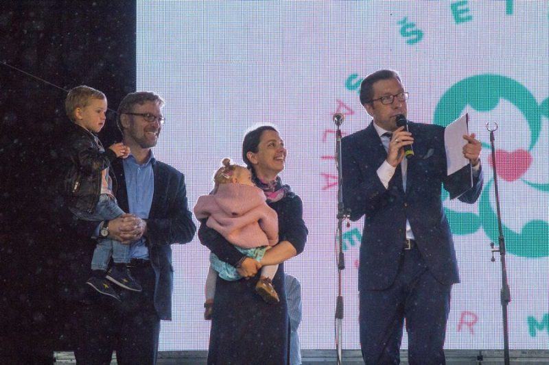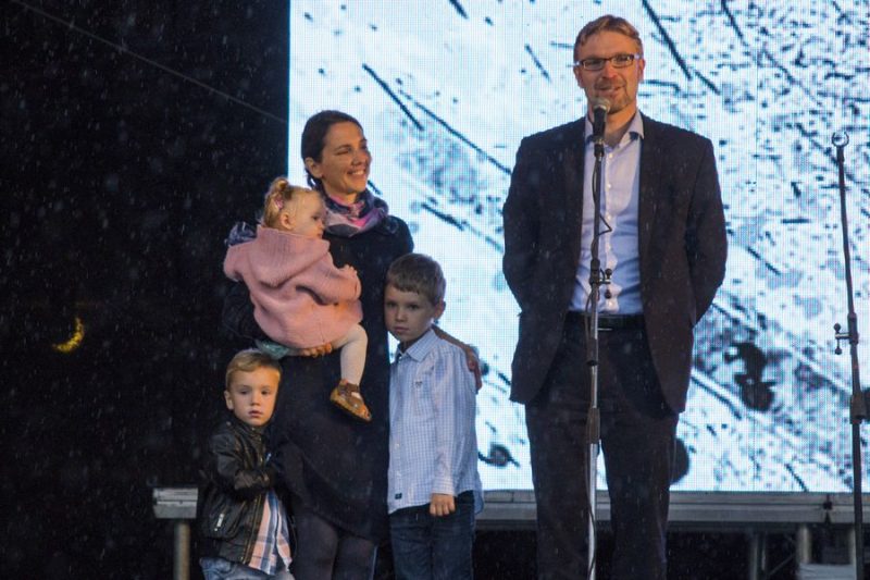 Penkis vaikus auginantis, iš Panevėžio kilęs ministras L. Kukuraitis į šventę atvyko su žmona ir būriu savo atžalų. (M. Garucko nuotr.)
