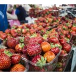 Turguje nuo spalvų net raibsta akys, bet akivaizdu, kad kol kas karaliauja braškės. Prekystaliai lūžta nuo uogų gausos. Galima rasti ir ką tik skintų lietuviškų, ir atvežtinių lenkiškų braškių. Tiesa, jų kaina skiriasi per pusę. Lenkiškų braškių kainos svyruoja nuo dviejų iki trijų su puse euro už kilogramą, o lietuviškų kai kur siekia ir septynis eurus.