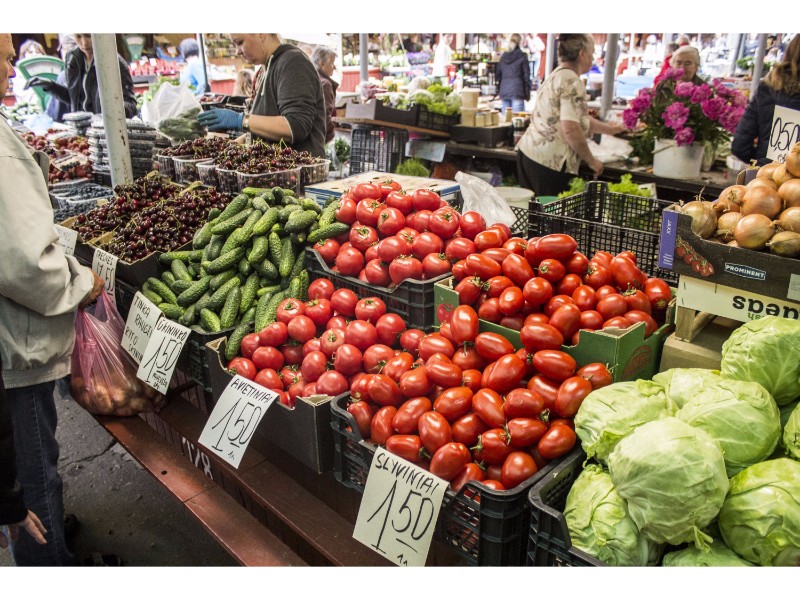 Pomidorų kainos, priklausomai nuo rūšies ir dydžio, svyruoja nuo euro iki pusantro, agurkai – nuo šešiasdešimt centų iki euro. Už ryšulėlį ridikėlių močiutės prašo penkiasdešimt centų, tiek pat kainuoja ir svogūnų laiškų pundelis.