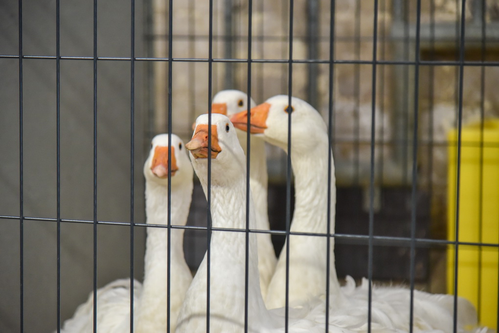 O vištinių paukščių parodoje kudakuoja beveik 400: dekoratyvinės, kovinės vištos, kalakutai, žąsys, antys, vienintelės Lietuvoje vištinės žąsys.
