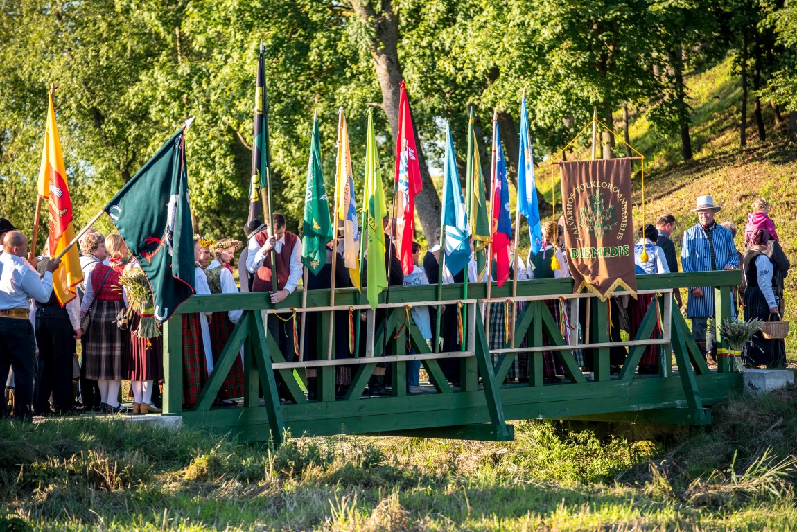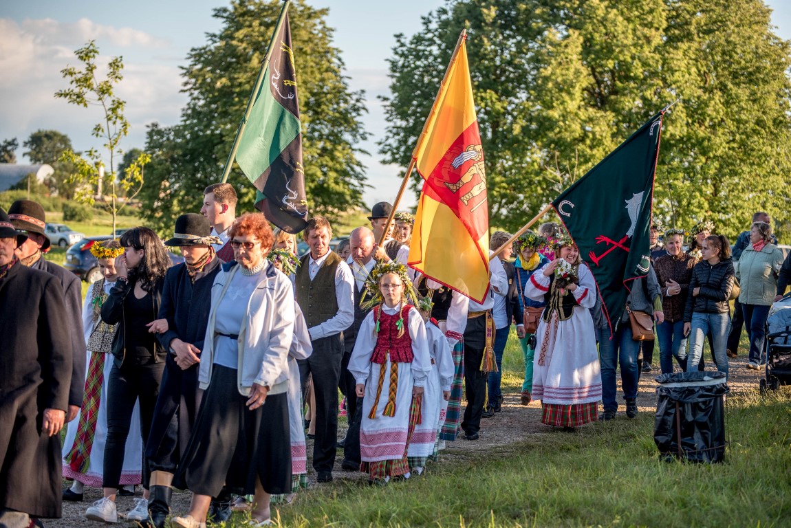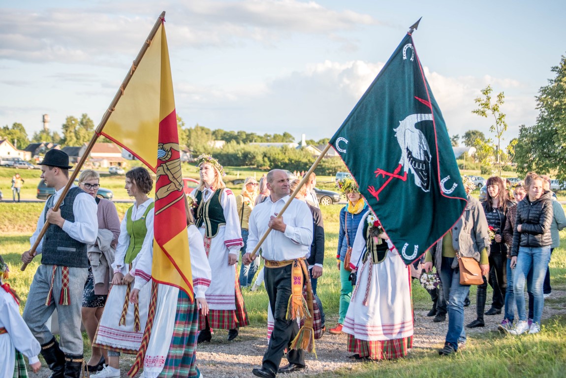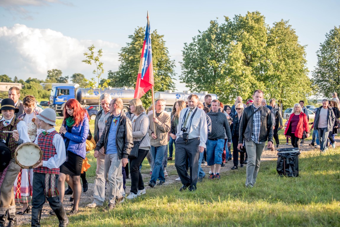 Pasibaigus pamaldoms šventinė eisena pajudėjo iš miestelio centro į šventės vietą. Gausiai ne tik iš Panevėžio, bet ir iš visų Lietuvos regionų susirinkę dalyviai žygiavo džiugiai dainuodami, sveikindami vieni kitus su Valstybės diena, vilkėdami tautiniais, skirtingus regionus atspindinčiais, kostiumais, nešini trispalvėmis ar savo regionų bei draugijų vėliavomis.