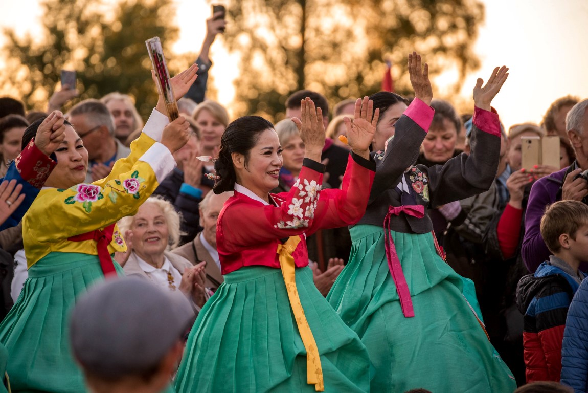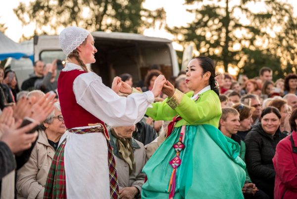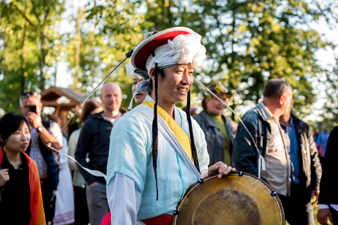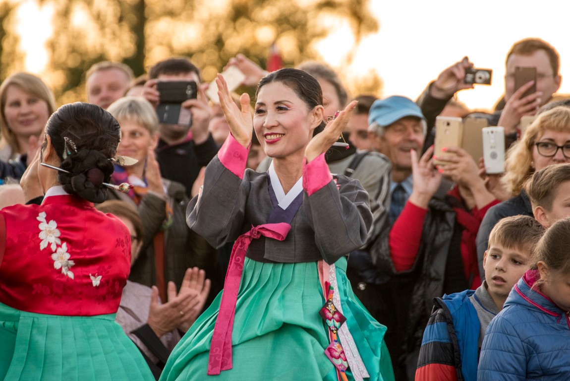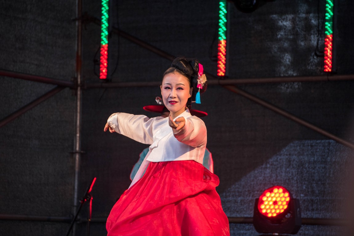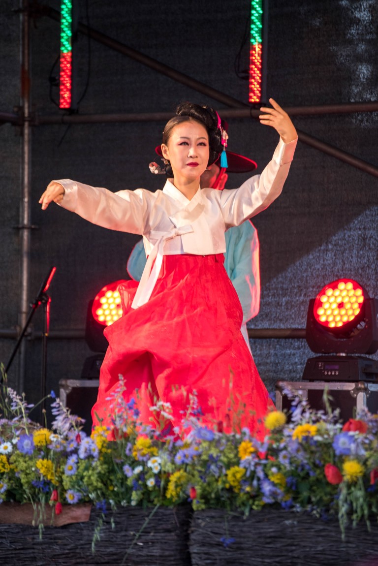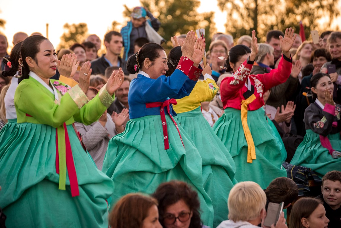 Folkloro grupė „Jan Chi Dang“ ne tik svečiavosi, bet ir padovanojo išskirtinį pasirodymą. Scenoje susėdę, didžiulius būgnus apglėbę korėjiečiai nustebino išskirtiniais ritmais, melodijomis. Tradicinės dainos, šokiai ne tik sulaukė gausių plojimų, bet ir privertė pakilti nuo kėdžių – netrukus drauge su korėjiečiais šoko ir lietuviai.