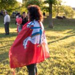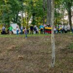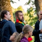 Nepabūgę praūžusios audros gyventojai rinkosi parke po medžiais – kas kėdes pasistatė, kas stovėjo, o vėliau ir į šokių ratelius įsisuko.