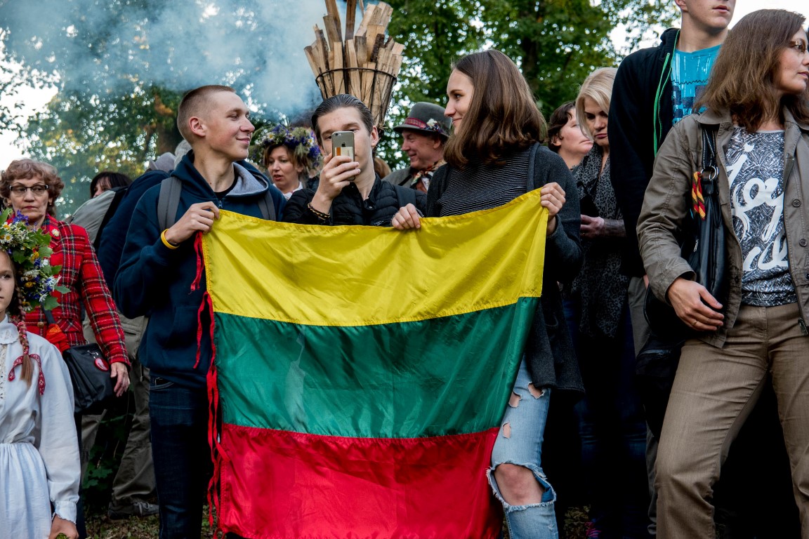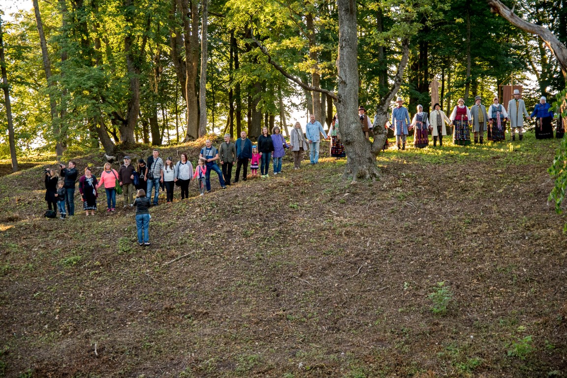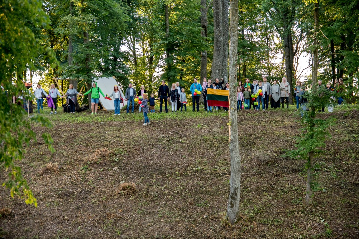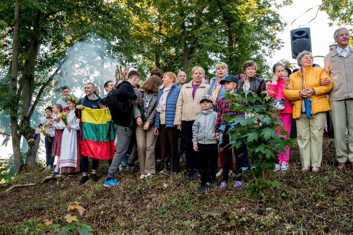 Laikrodžiui išmušus devintą, dainos ir šokiai nurimo. Skirtingose piliakalnio vietose išsibarstę renginio svečiai atsisuko vieni į kitus, susikibo rankomis ir piliakalnyje suskambo tautiška giesmė. Po jos aidėjo žodis „Lietuva“.