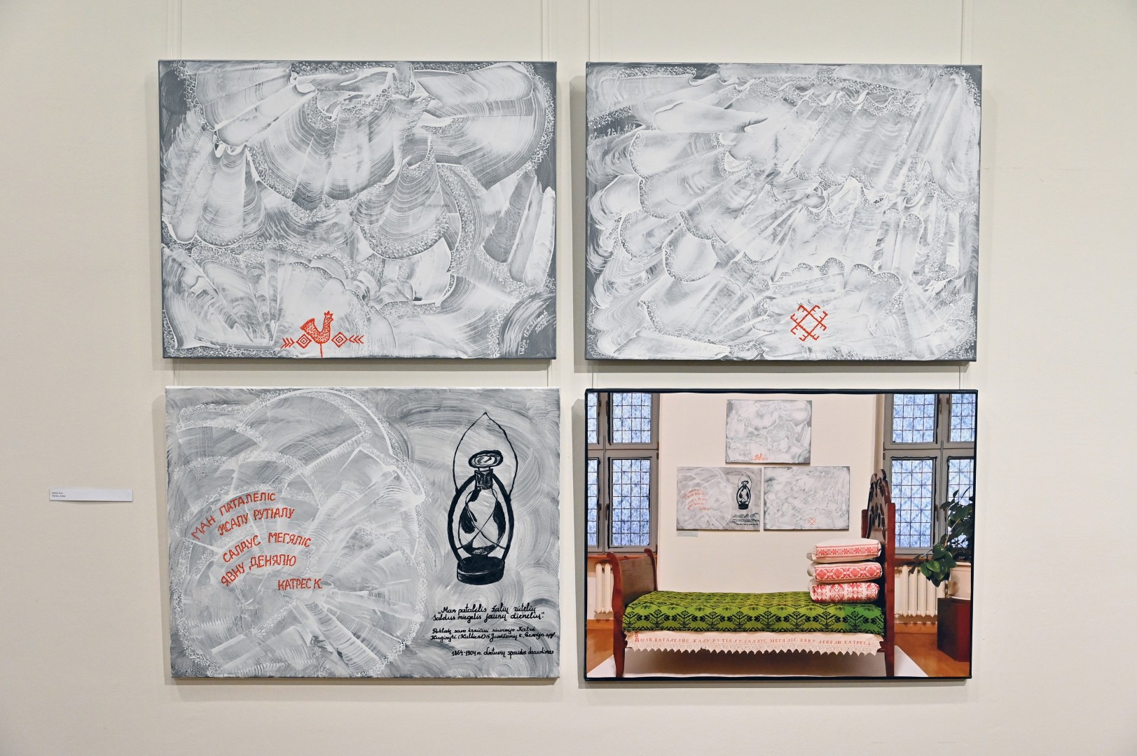 Panevėžio dailės galerijoje atidaryta dailininkės, menininkės, žurnalistės Lilijos Valatkienės tapybos paroda „Būtasis kartinis. Užkalbėjimai“.