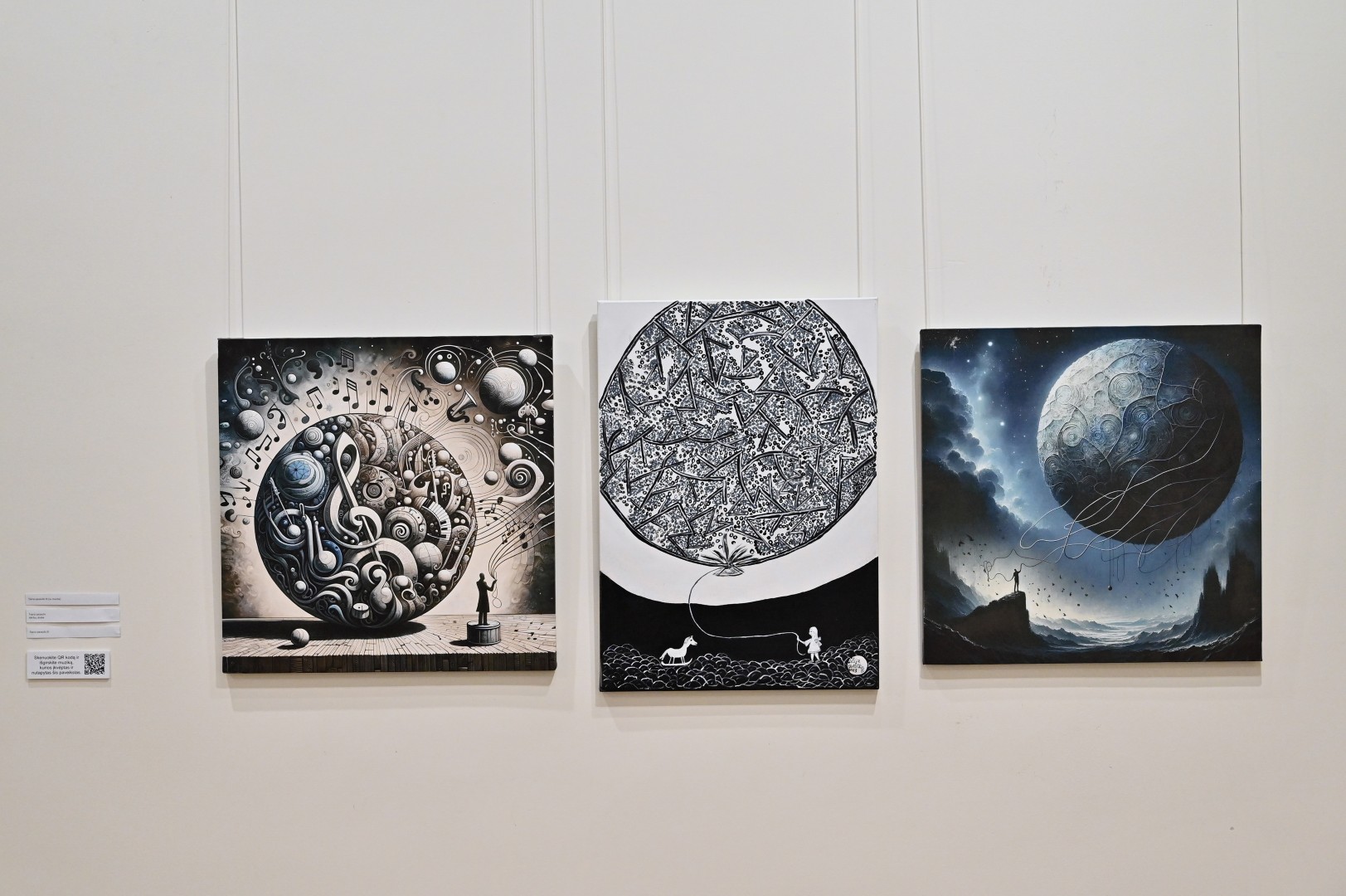 Pelkių ir Antano Mončio švilpių įkvėptos tarpdisciplininio meno kūrėjos parodoje, skambant kompozitoriaus Martyno Liudžio (2003–2024) kurtai muzikai, pristatomi tapybos ir dirbtinio intelekto kūriniai.