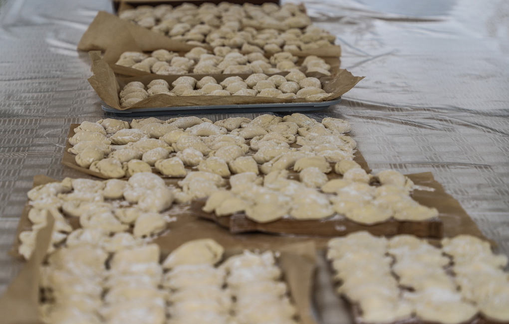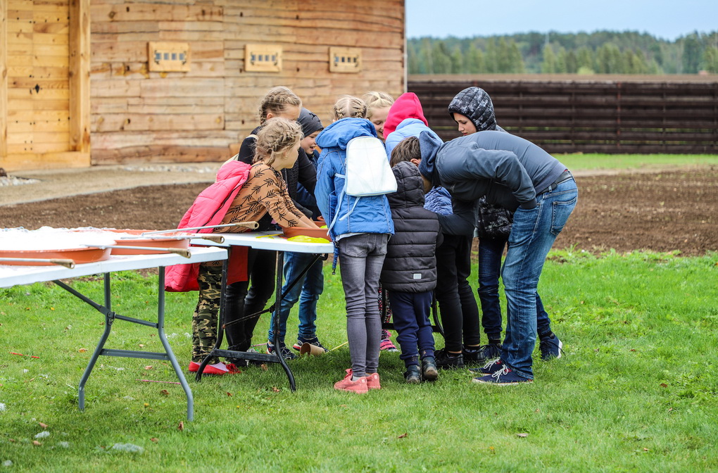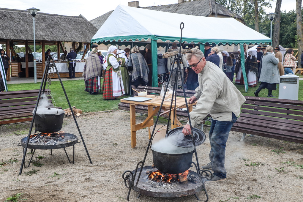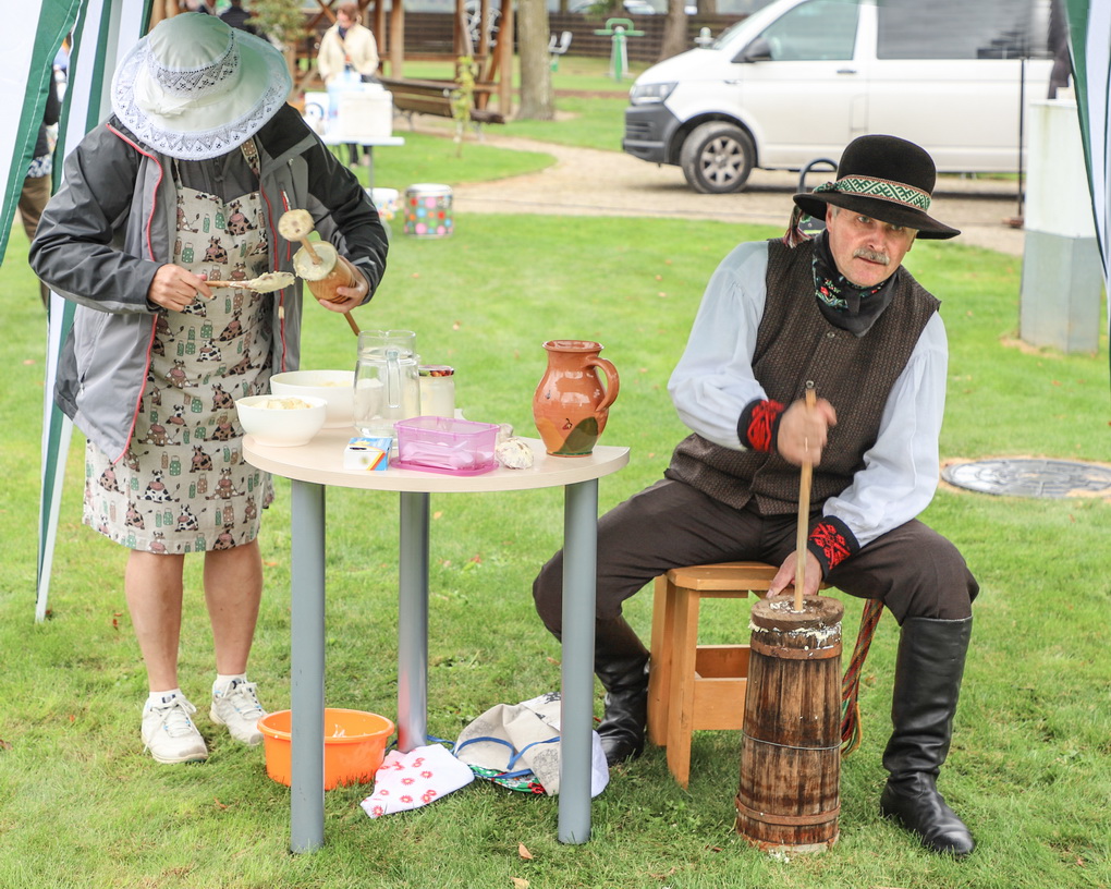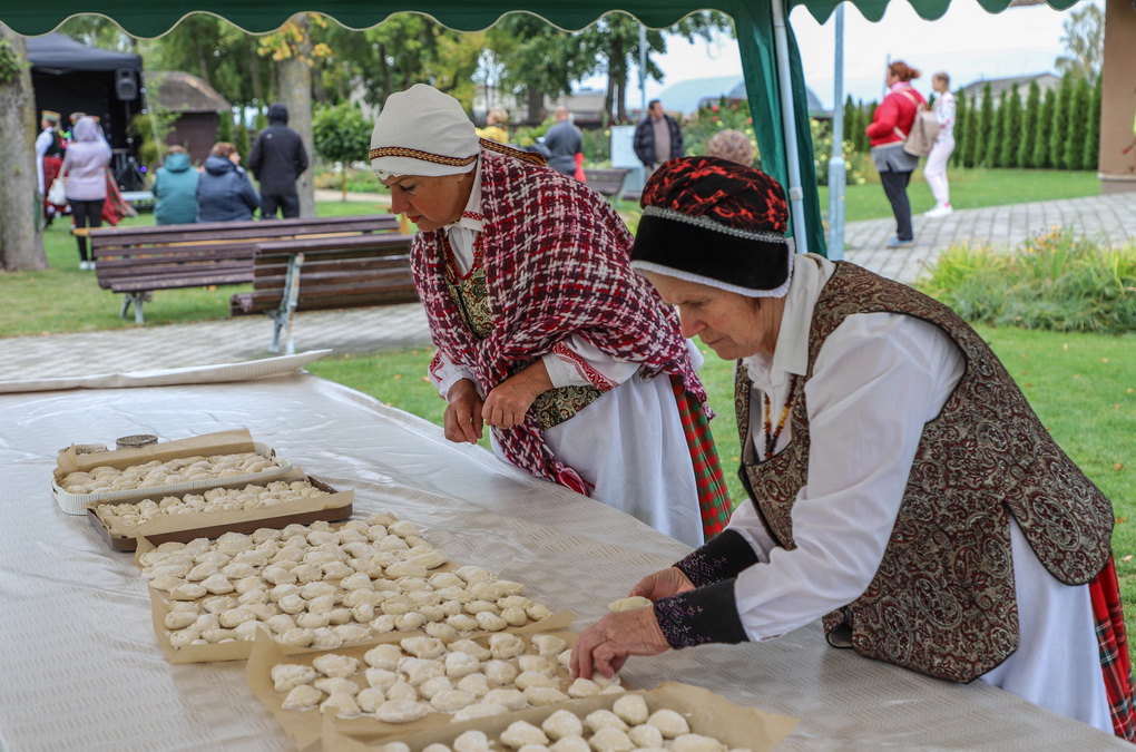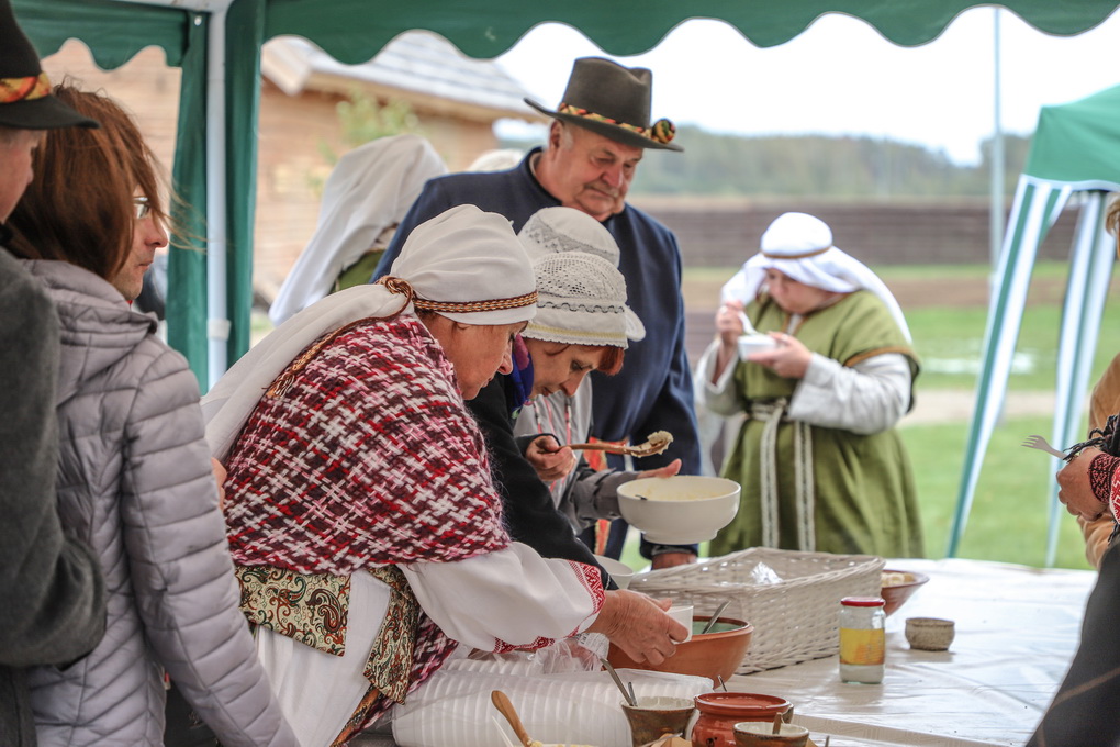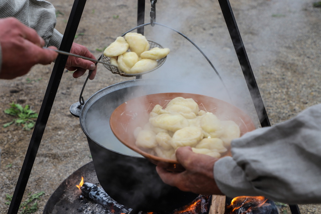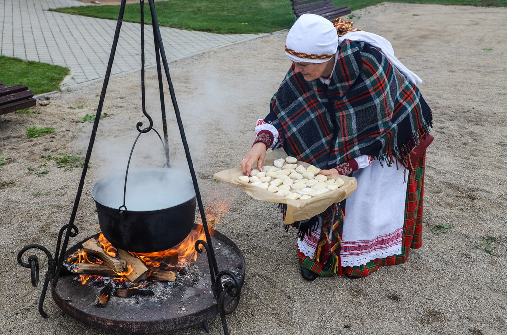 Bet kokia gi talka be pabaigtuvių vaišių! Kol vieni rovė linus, prie puodų sukosi šeimininkės – raitė tradicinius aukštaitiškus virtinius su varške, pagardintus mėtomis. O vaišinantis prie bendro stalo jie tapo dar gardesni.