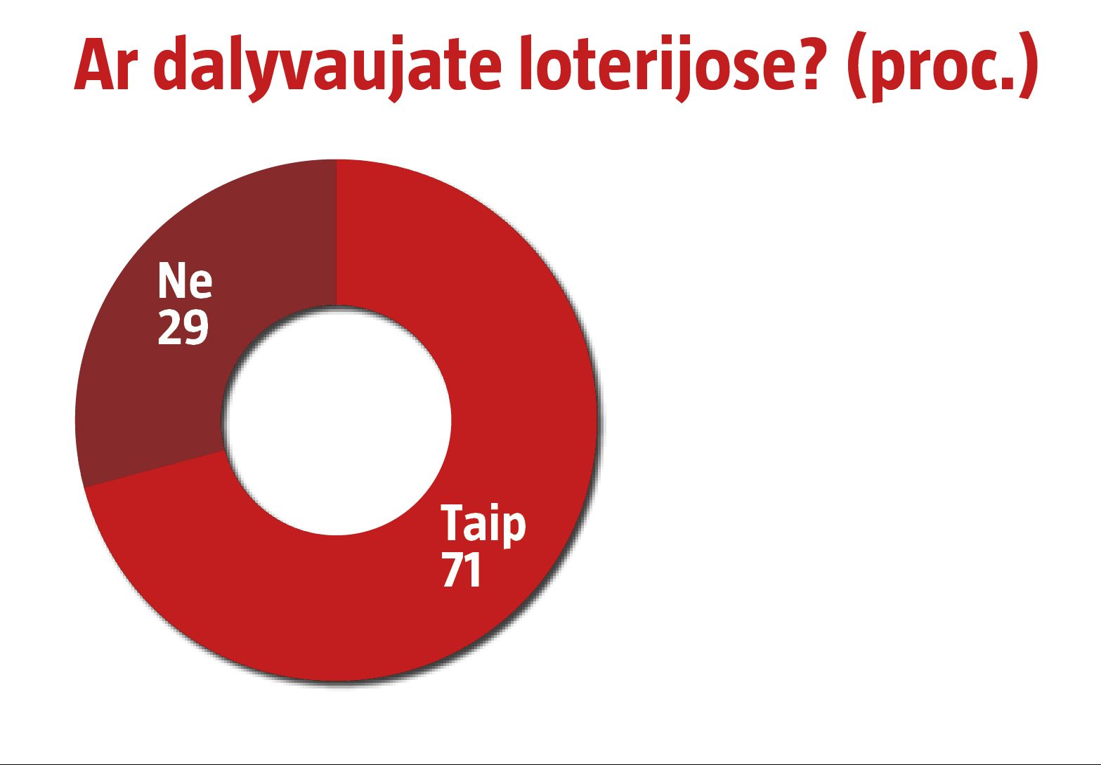 Tik 13 proc. apklaustų šalies gyventojų pripažino lošę azartinius lošimus, bet loterijose yra dalyvavę net 71 proc. respondentų.