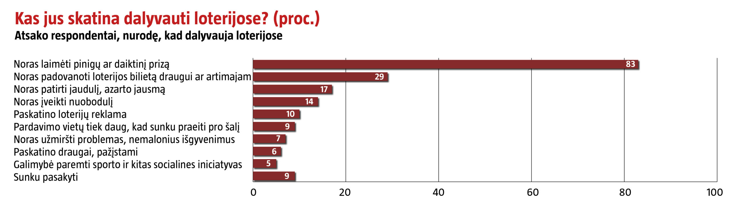 Azartą, kaip paskatą dalyvauti loterijose, nurodė 17 proc. respondentų.