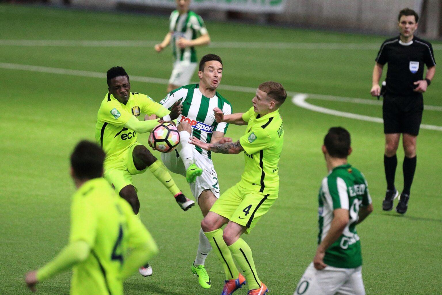 Lietuvos futbolo A lygoje trečiadienį įvyko pirmoji 2017 metų sezono grandų akistata. „Sportimos“ manieže vykusiose rungtynėse nominaliai namuose žaidę „Trakų“ futbolininkai 0:1 nusileido Vilniaus „Žalgiriui“.