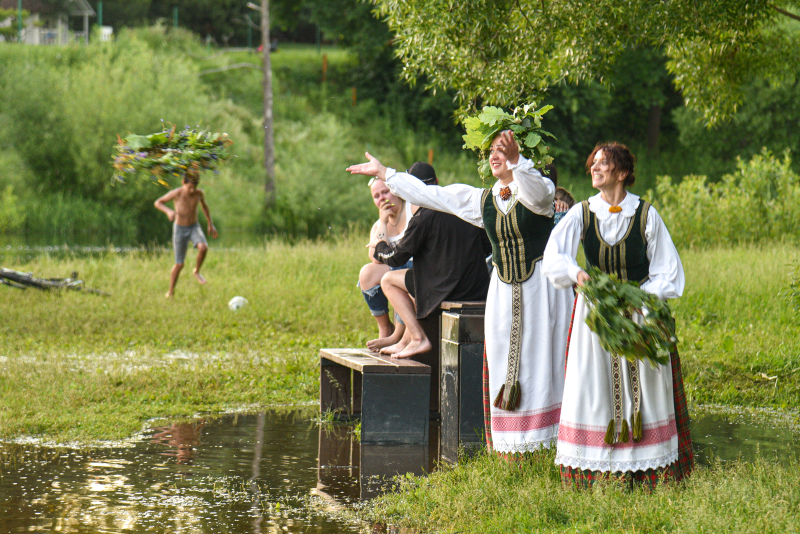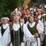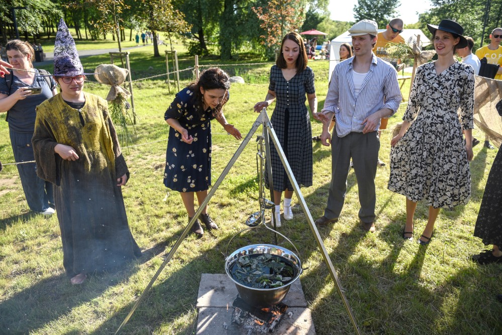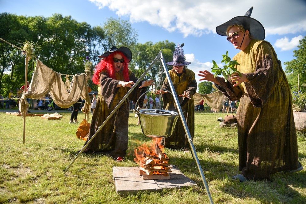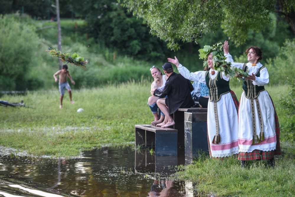 Vasarvidžio šventėje panevėžiečiai pakartojo senąsias tradicijas: kupoliavo, pynė vainikus, juos plukdė Nevėžio vandenyse, neapsieita ir be raganų burtų.
