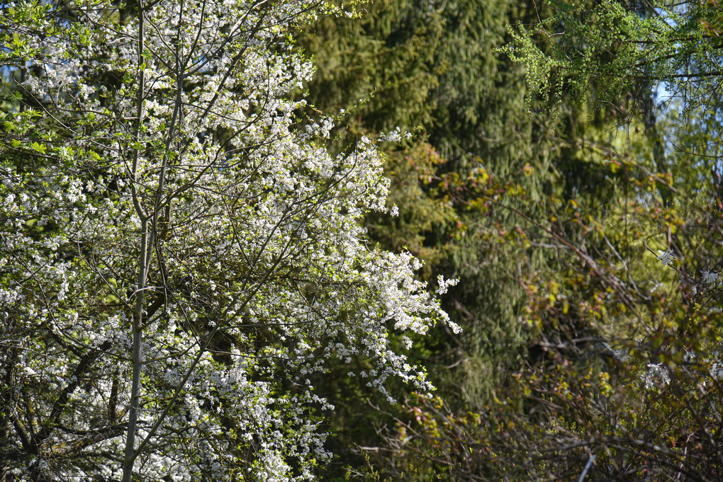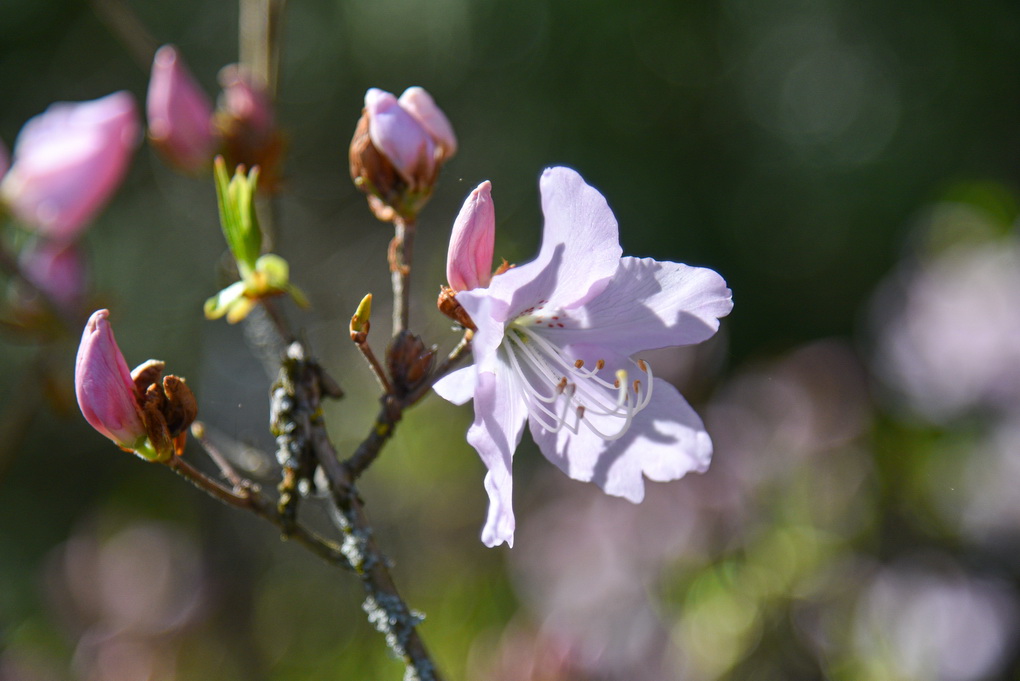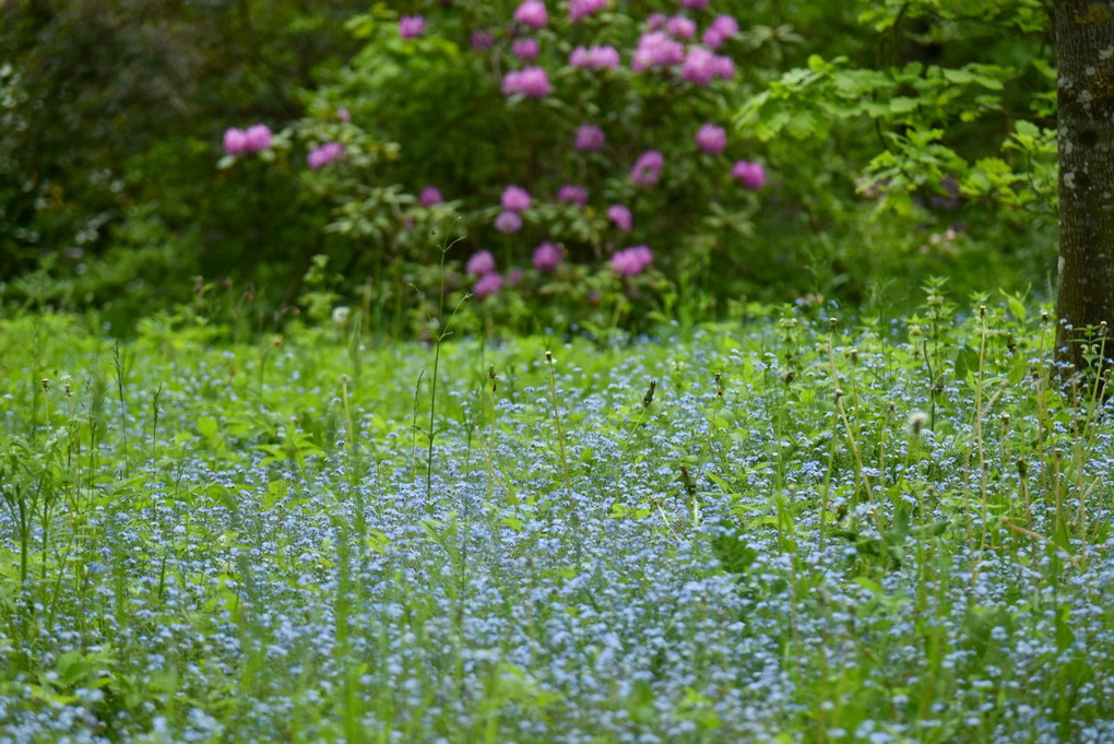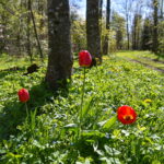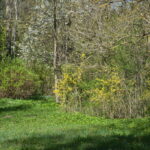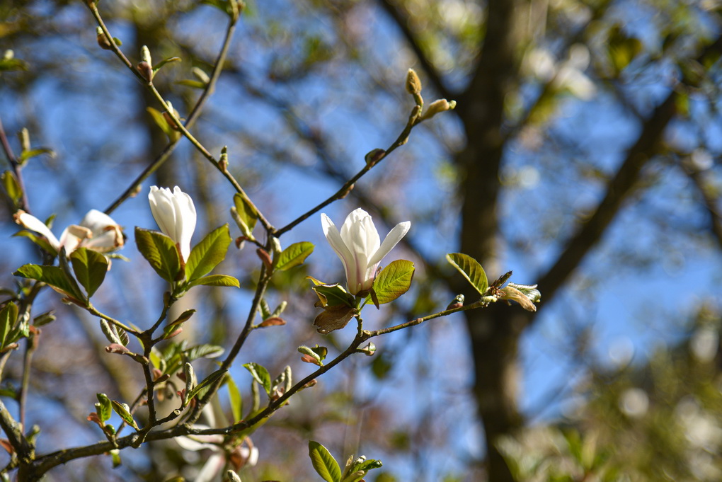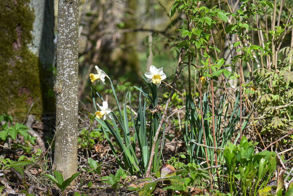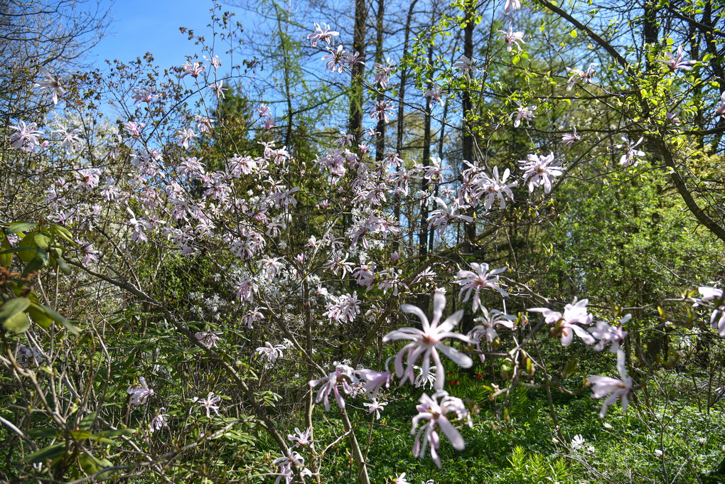 Taip žydi miške susodintos magnolijos, rododendrai, tarp miško žolynų galvas kelia tulpės, skleidžiasi narcizai, kitos darželių gėlės.